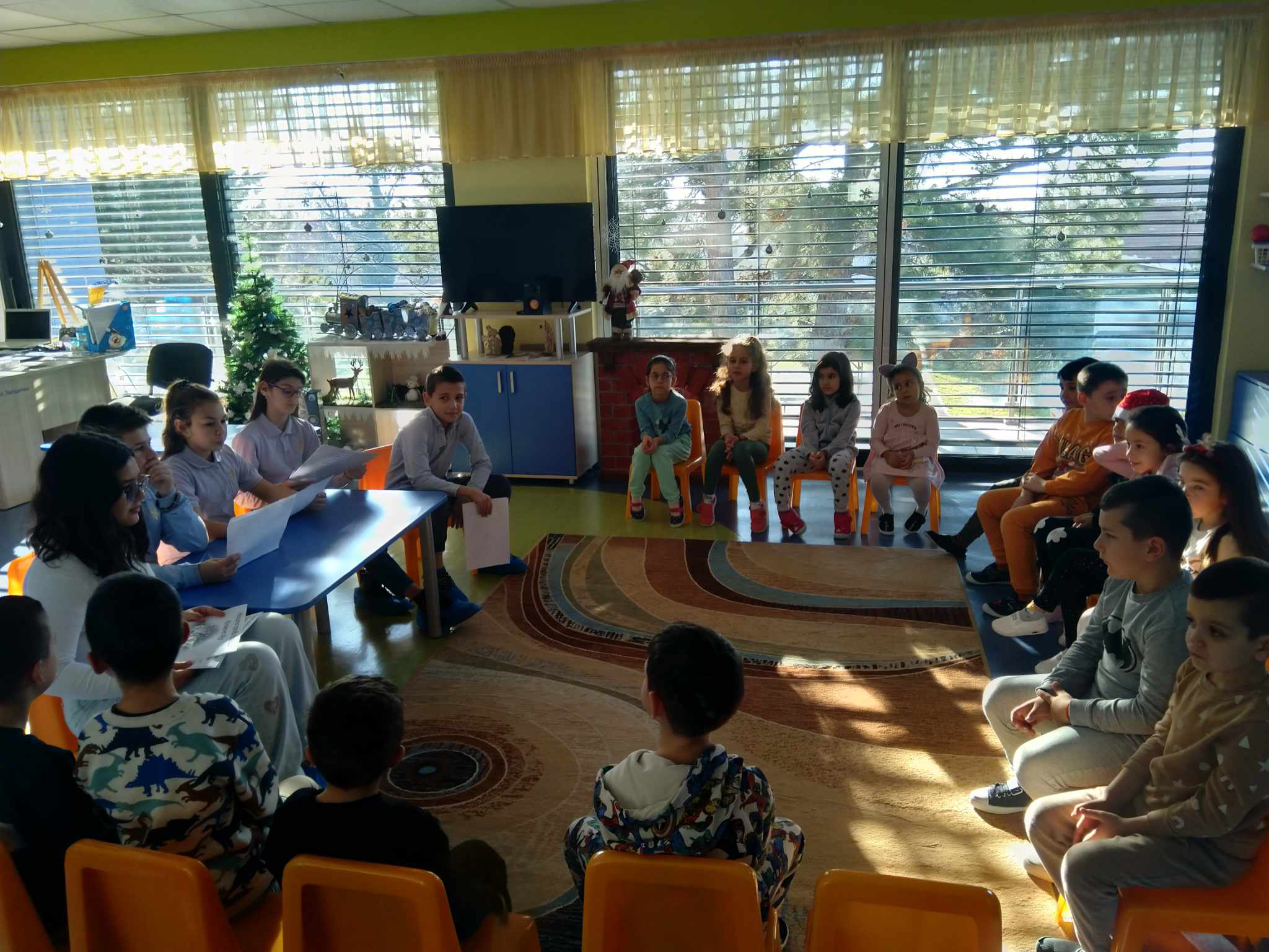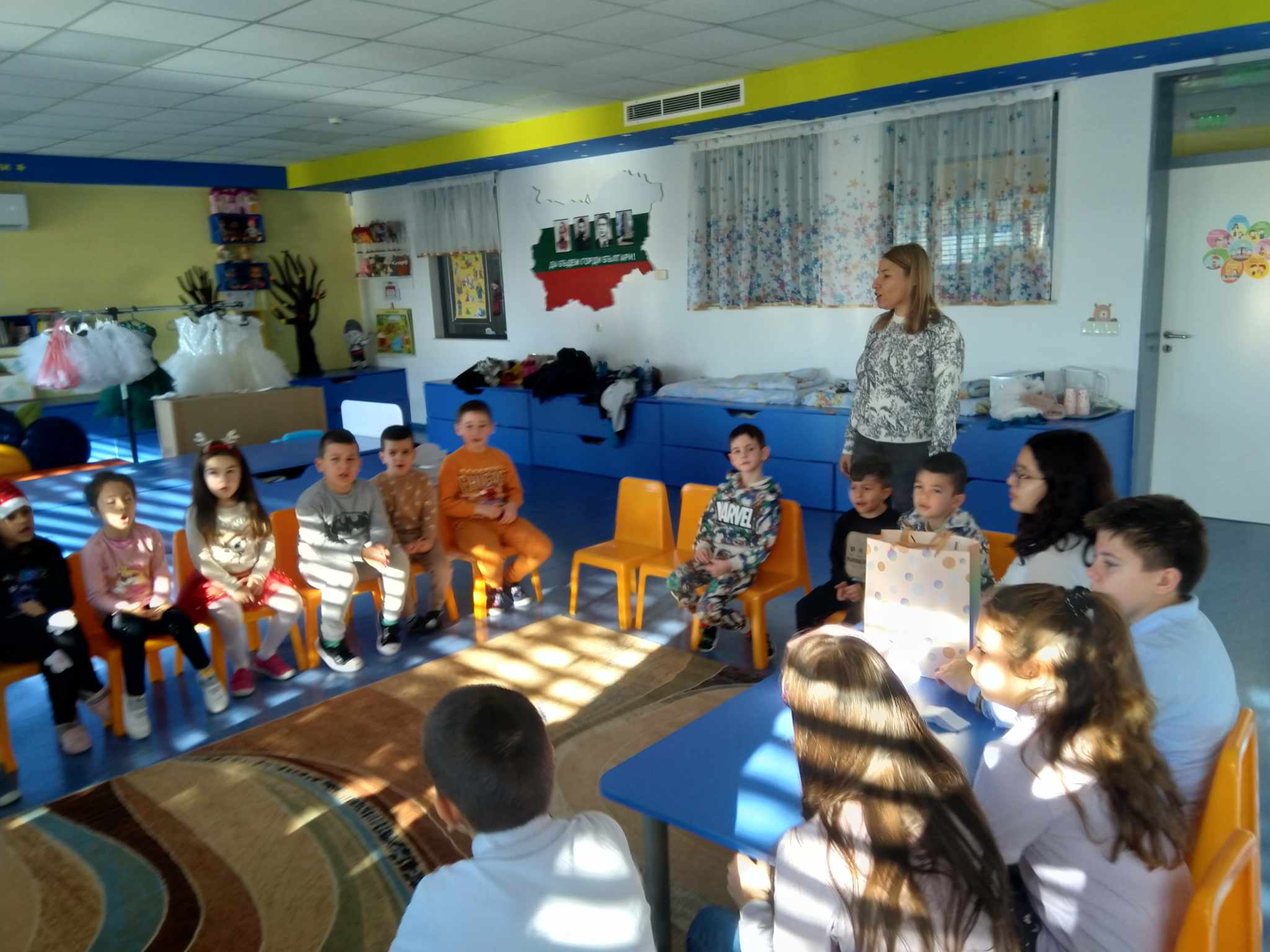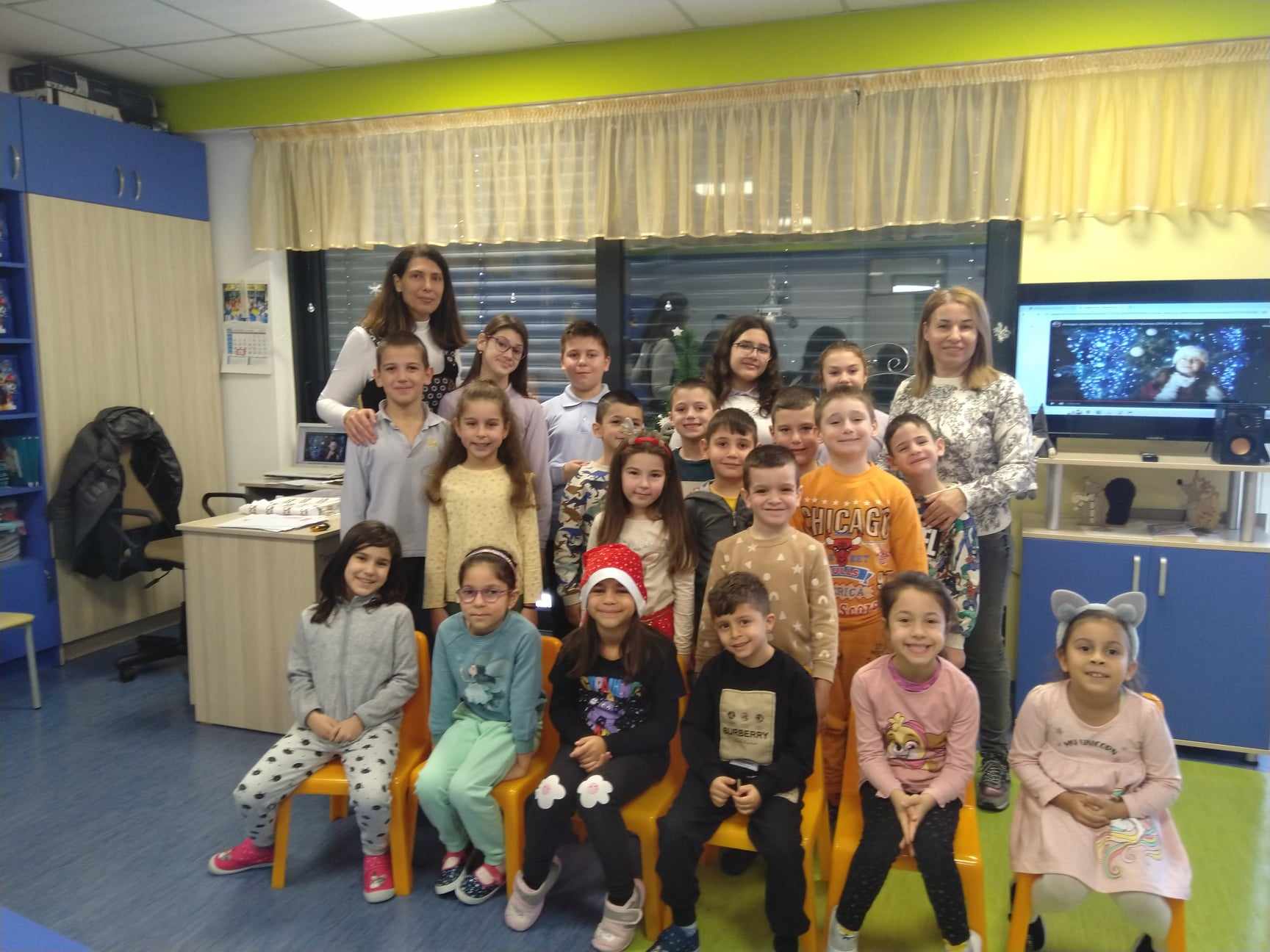 Те бяха посрещнати с много усмивки и любопитни погледи от малчуганите. Четвъртокласниците и техните учители г-жа Димова и г-жа Вачкова, бяха подготвили коледни приказки, викторина и ръчно направени картички и стикер награди по случай предстоящите празници.
