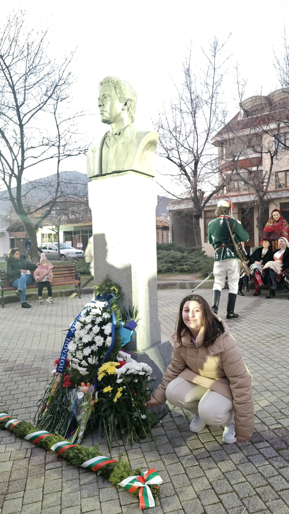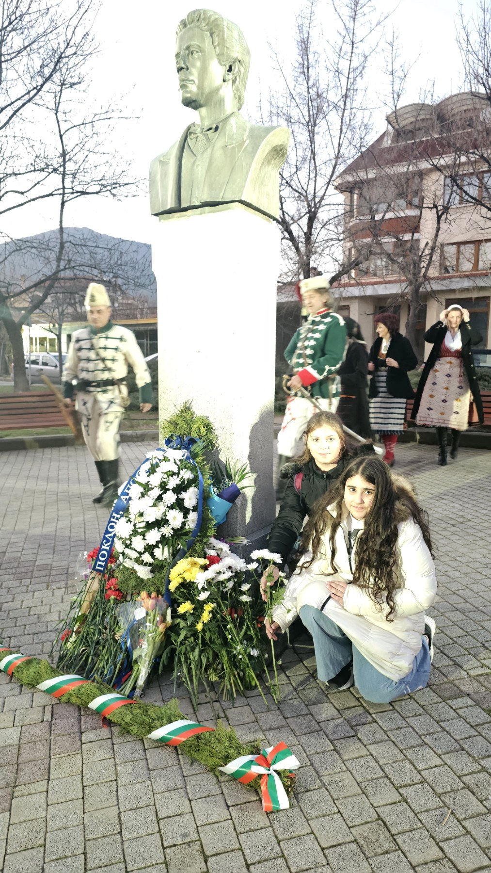 С едноминутно мълчание беше почетена паметта на Апостола. Учениците поднесоха цветя в знак на преклонение и признателност към делото, подвига и саможертвата на Васил Левски.