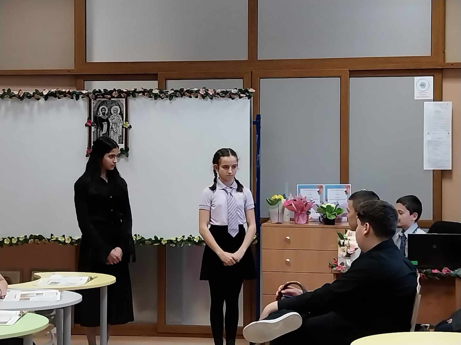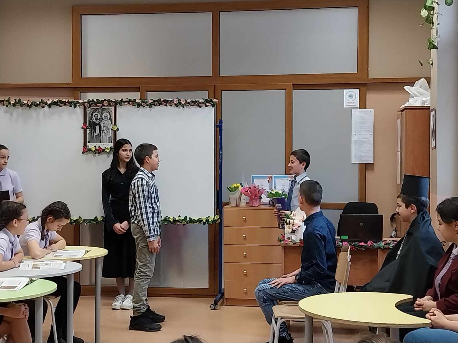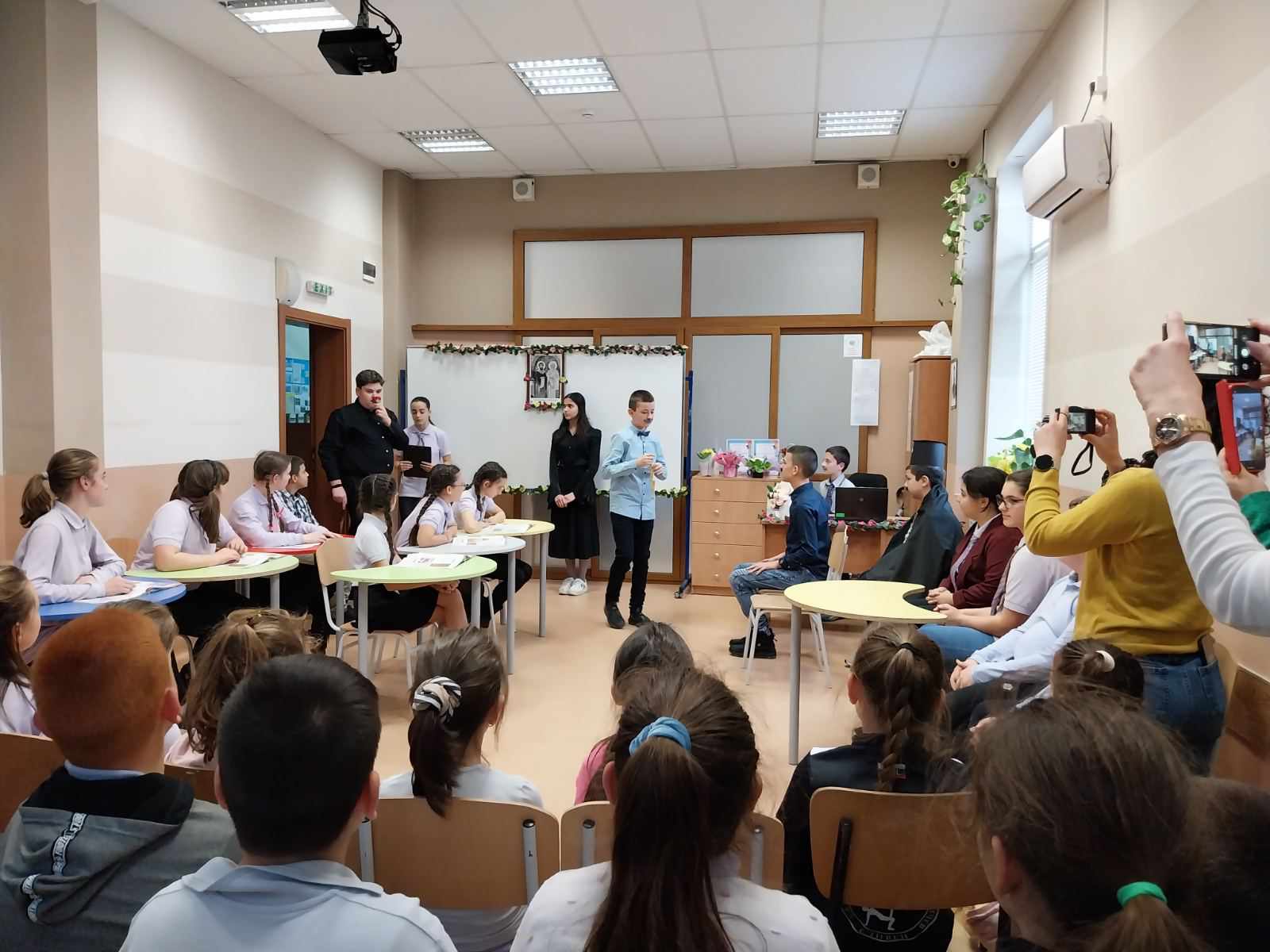 Поканени бяха ръководството,  учители, родители и ученици от начален етап, които благодарение на майсторската игра на нашите възпитаници, успяха да се докоснат до атмосферата на най-българското време, а именно епохата на Възраждането с ключов момент подготовката на Априлското въстание. Зрителите станаха част от емоцията на българското възрожденско училище и вярата в силата на знанието, чрез умело пресъздадените от учениците образи на Рада, Огнянов, Стефчов и т.н. Почувстваха идеята за националните, нравствени и исторически стойности на времето. Всички останаха впечатлени от отличните актьорски умения на шестокласниците.