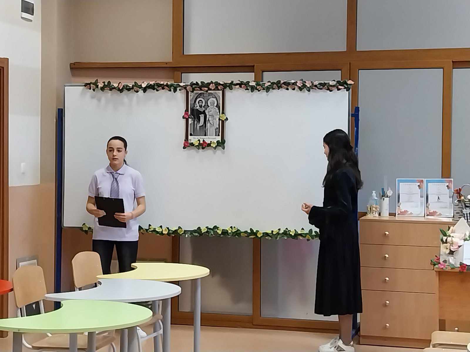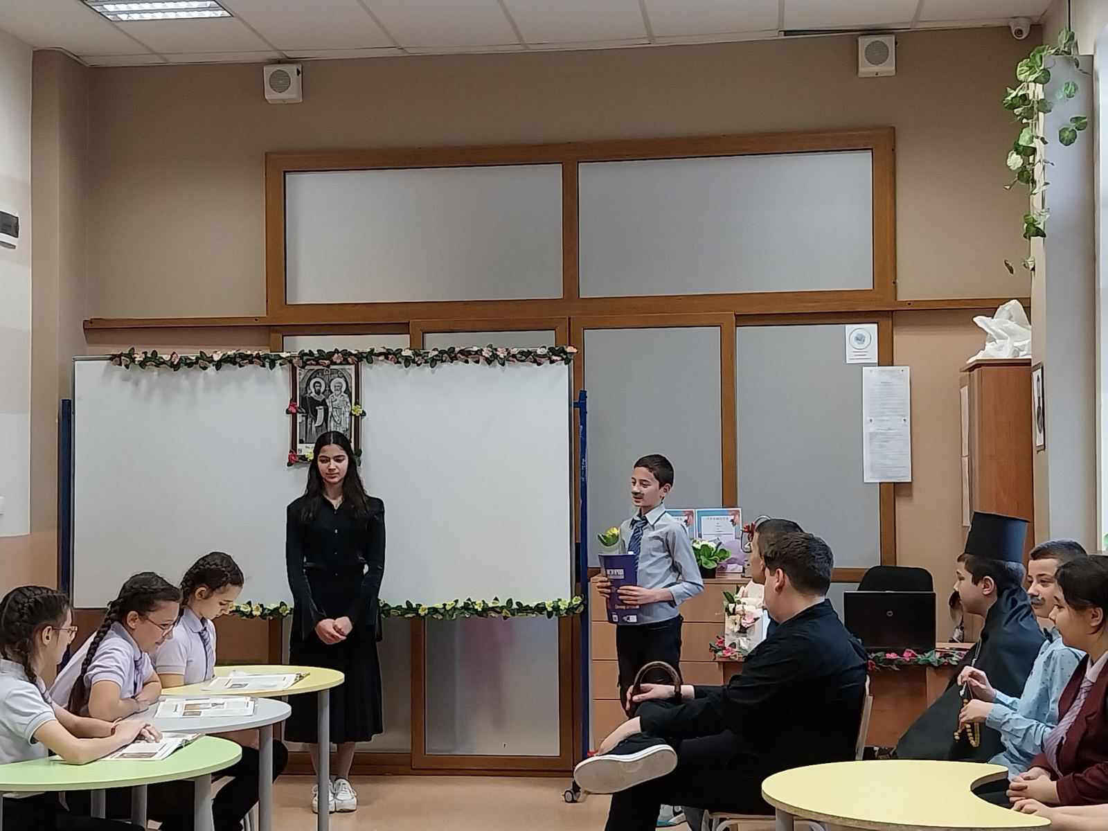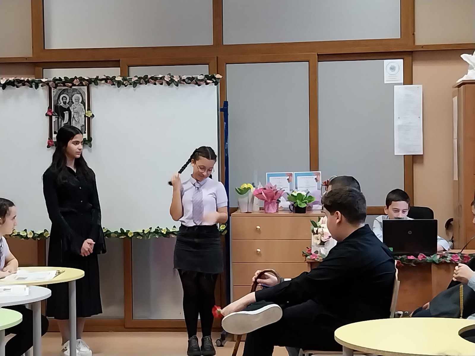 Поканени бяха ръководството,  учители, родители и ученици от начален етап, които благодарение на майсторската игра на нашите възпитаници, успяха да се докоснат до атмосферата на най-българското време, а именно епохата на Възраждането с ключов момент подготовката на Априлското въстание. Зрителите станаха част от емоцията на българското възрожденско училище и вярата в силата на знанието, чрез умело пресъздадените от учениците образи на Рада, Огнянов, Стефчов и т.н. Почувстваха идеята за националните, нравствени и исторически стойности на времето. Всички останаха впечатлени от отличните актьорски умения на шестокласниците.