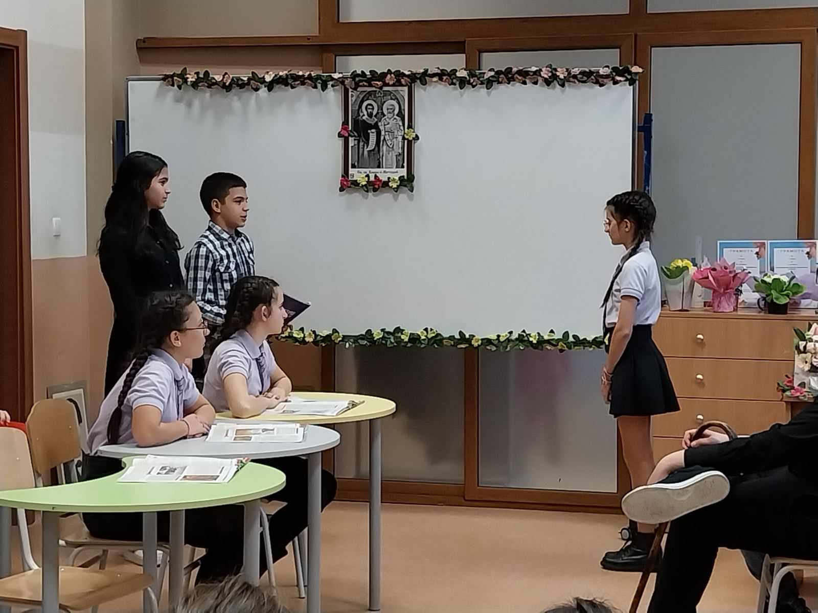 Днес с учениците от 6 „а“ клас бе проведен интердисциплинарен урок, разкриващ връзката на литературата с историята, изкуството и други общообразователни предмети.
