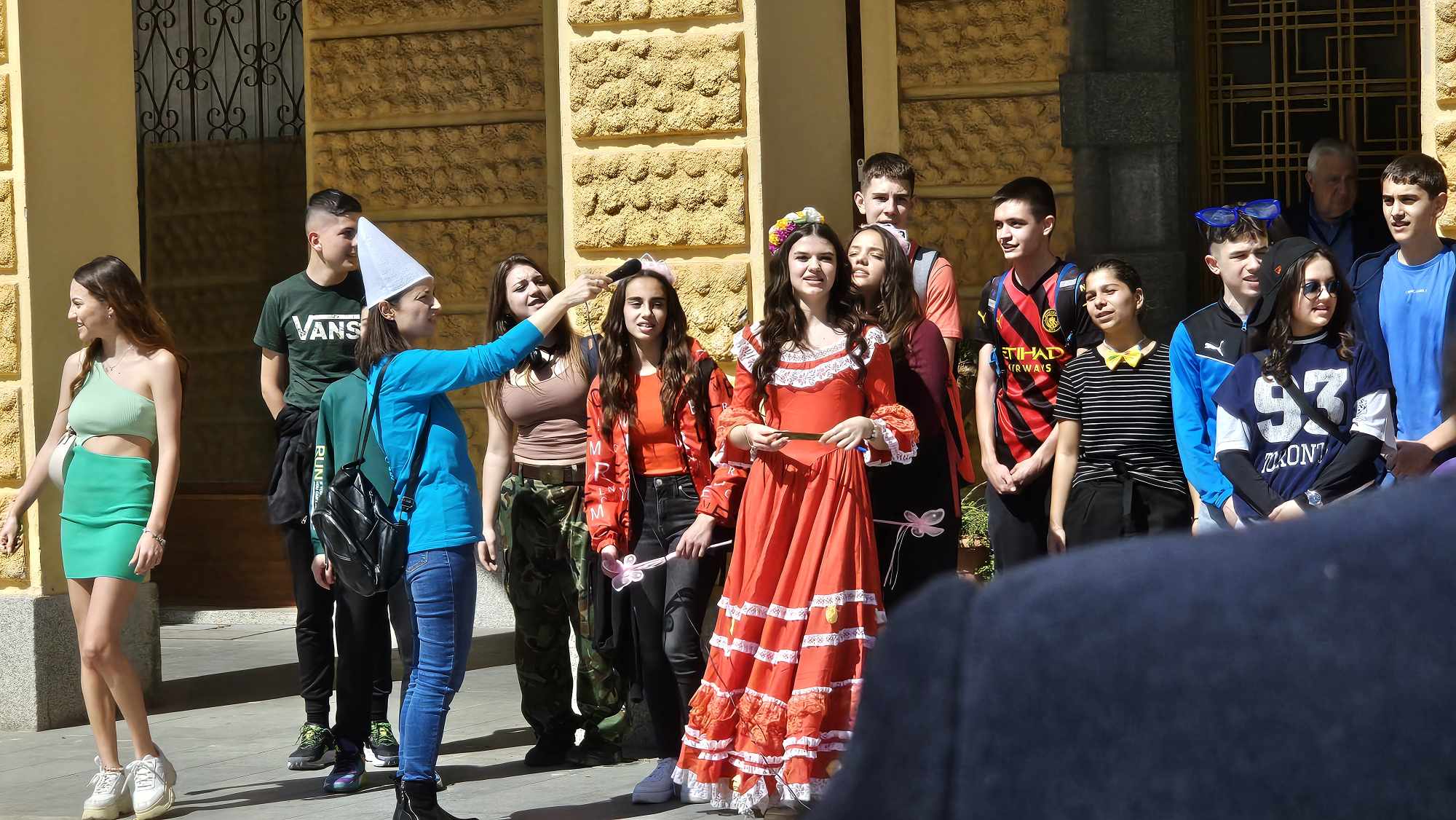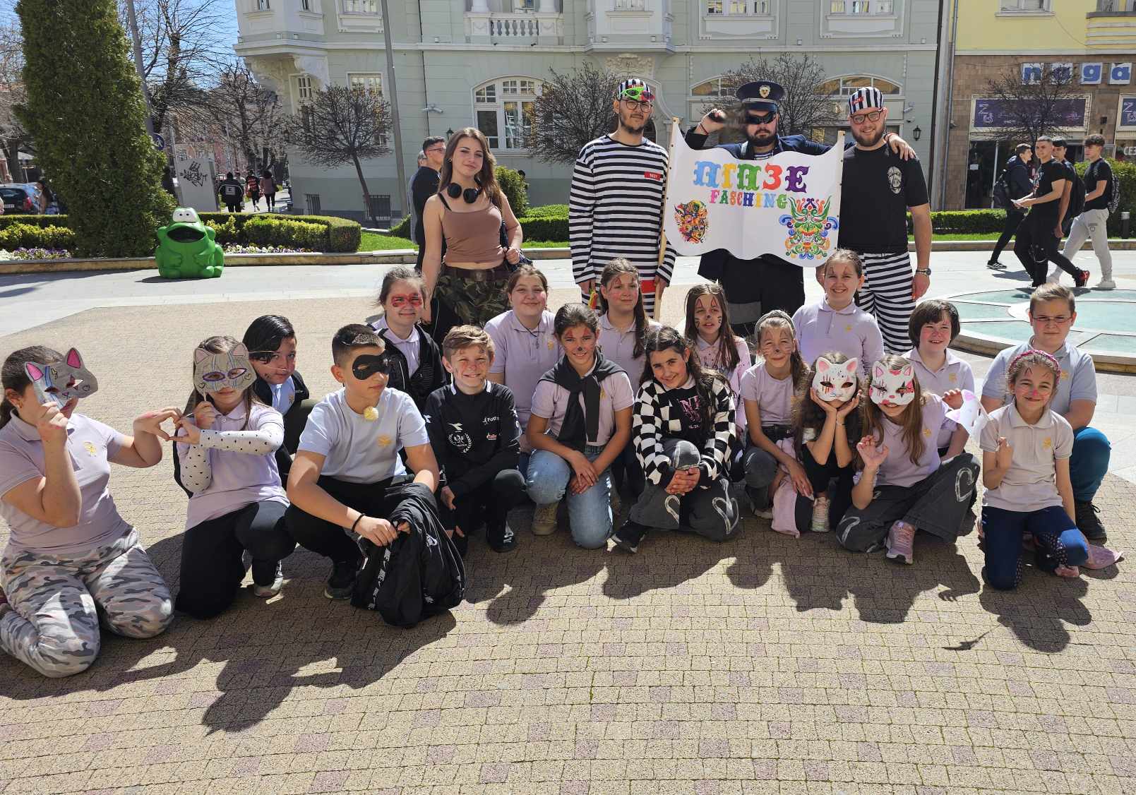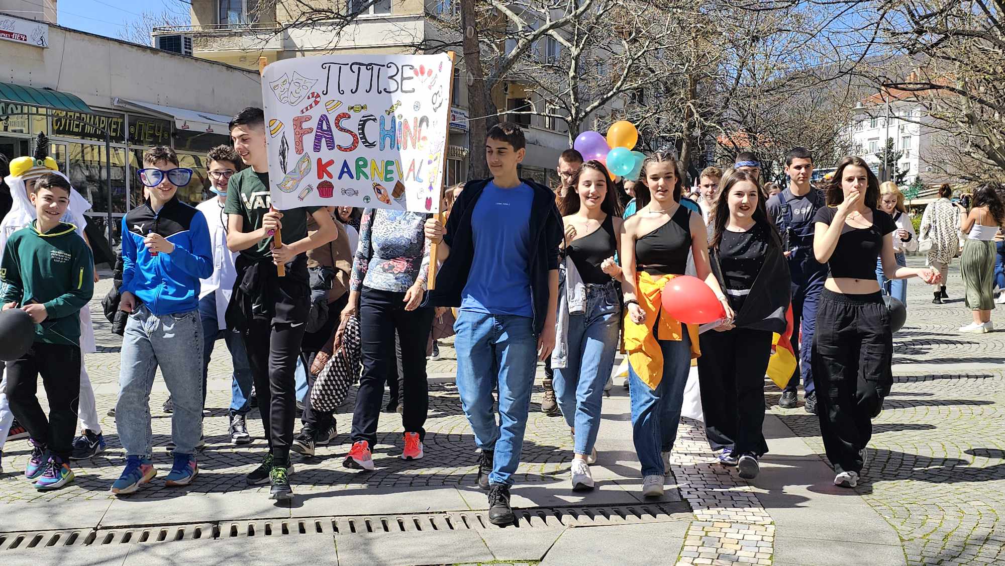 Гимназистите, които изучават немски език бяха облечени като любимите си приказни и филмови герои, с цел да дарят повече усмивки на хората и да ги накарат да се потопят във вълшебната атмосфера на немския Фашинг. Учениците от ОУ “Димитър Петров” също носеха маски и се почувстваха част от празника, за който предварително се бяха подготвили с информация. Пред Община Сливен те се насладиха и на традиционни за празника немски песни.
