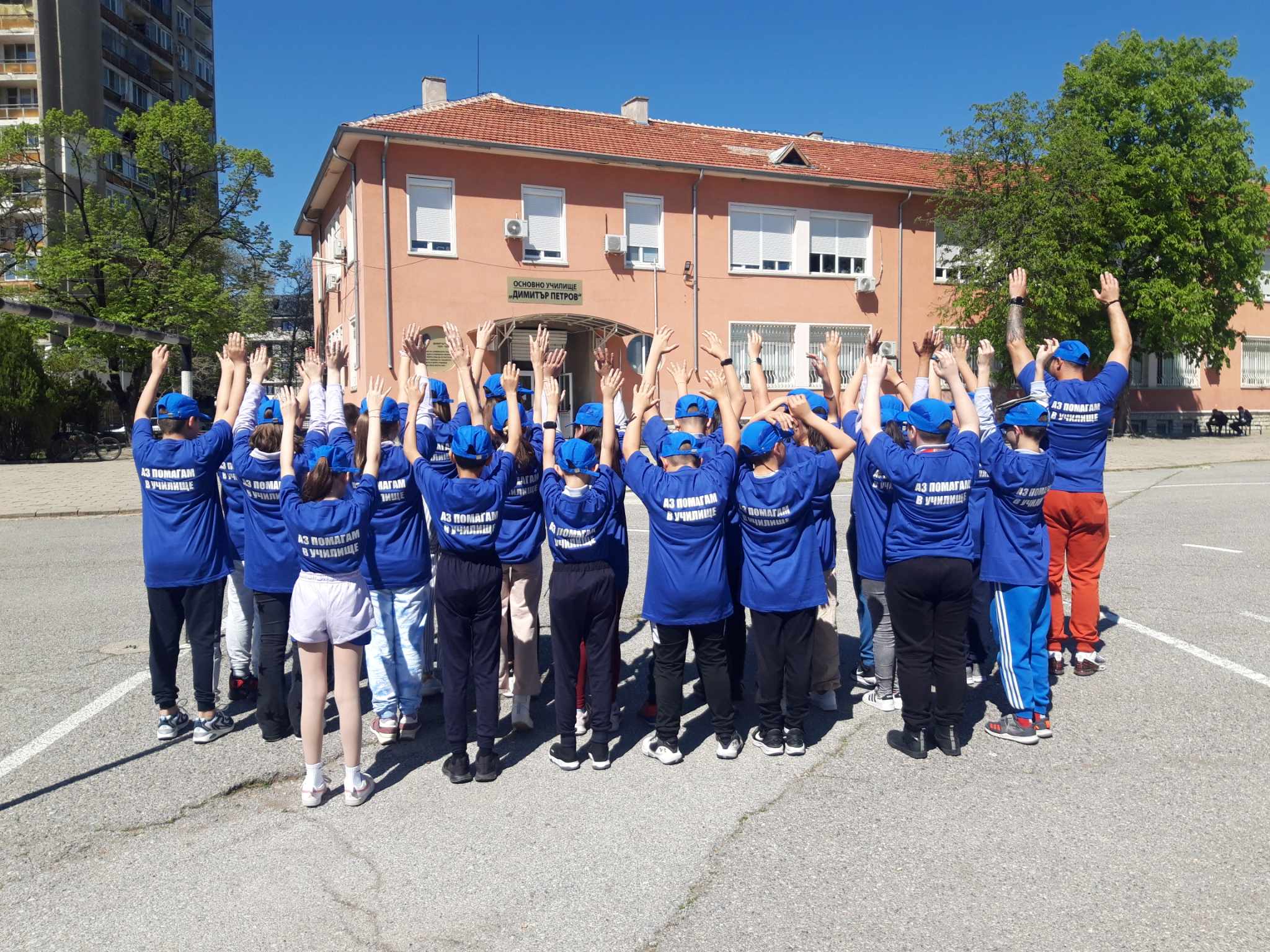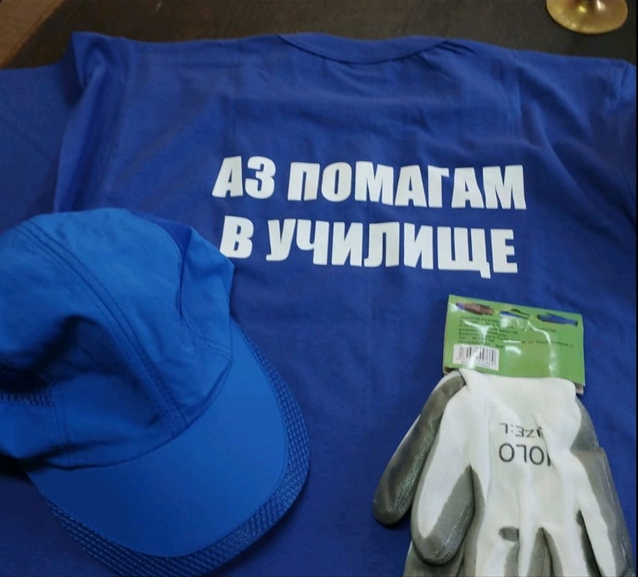 Изготвени бяха тениски с надпис ,,Аз помагам в училище“, към които има шапки и работни ръкавици, а останалото е желанието и труда на учениците.