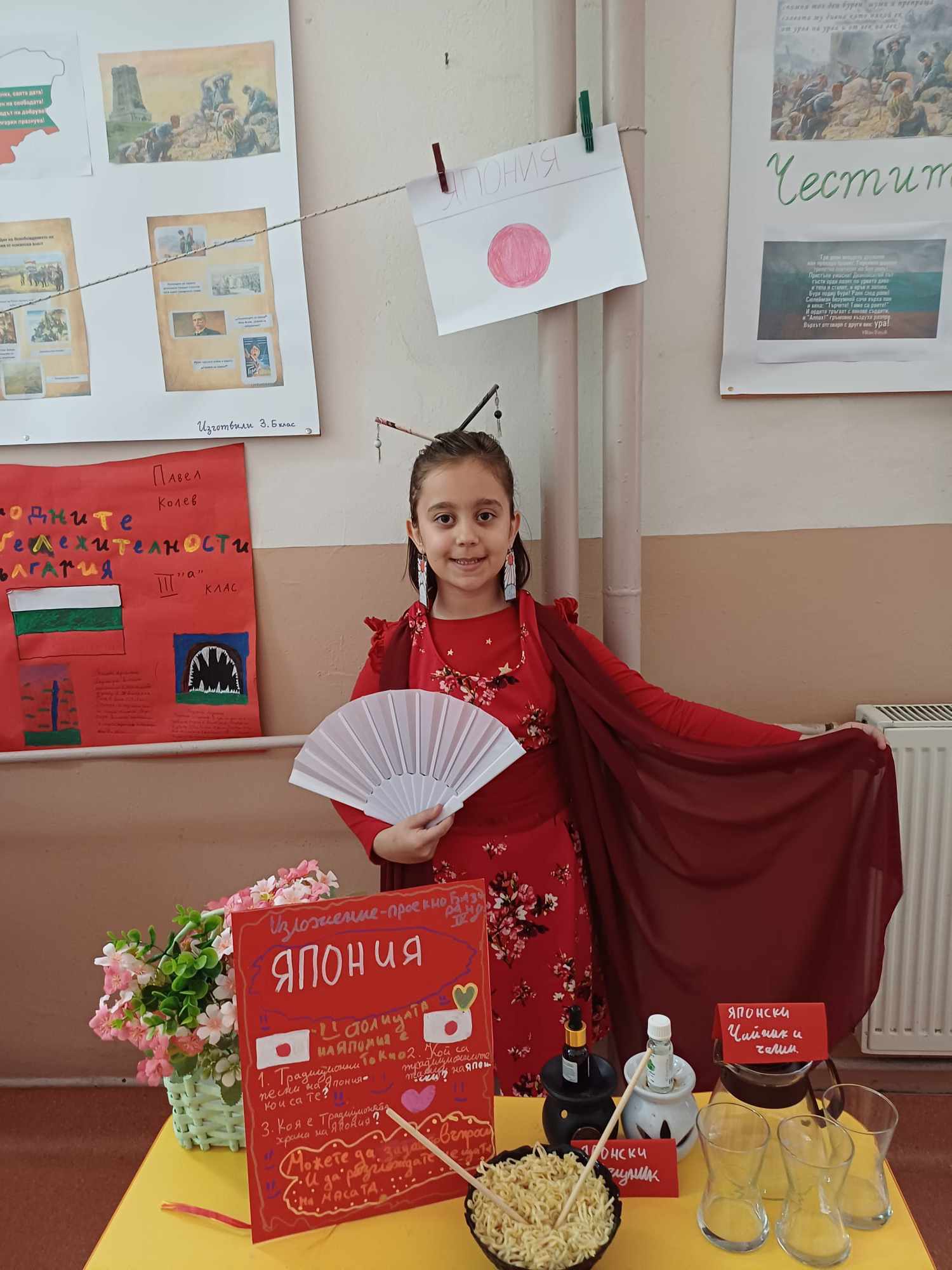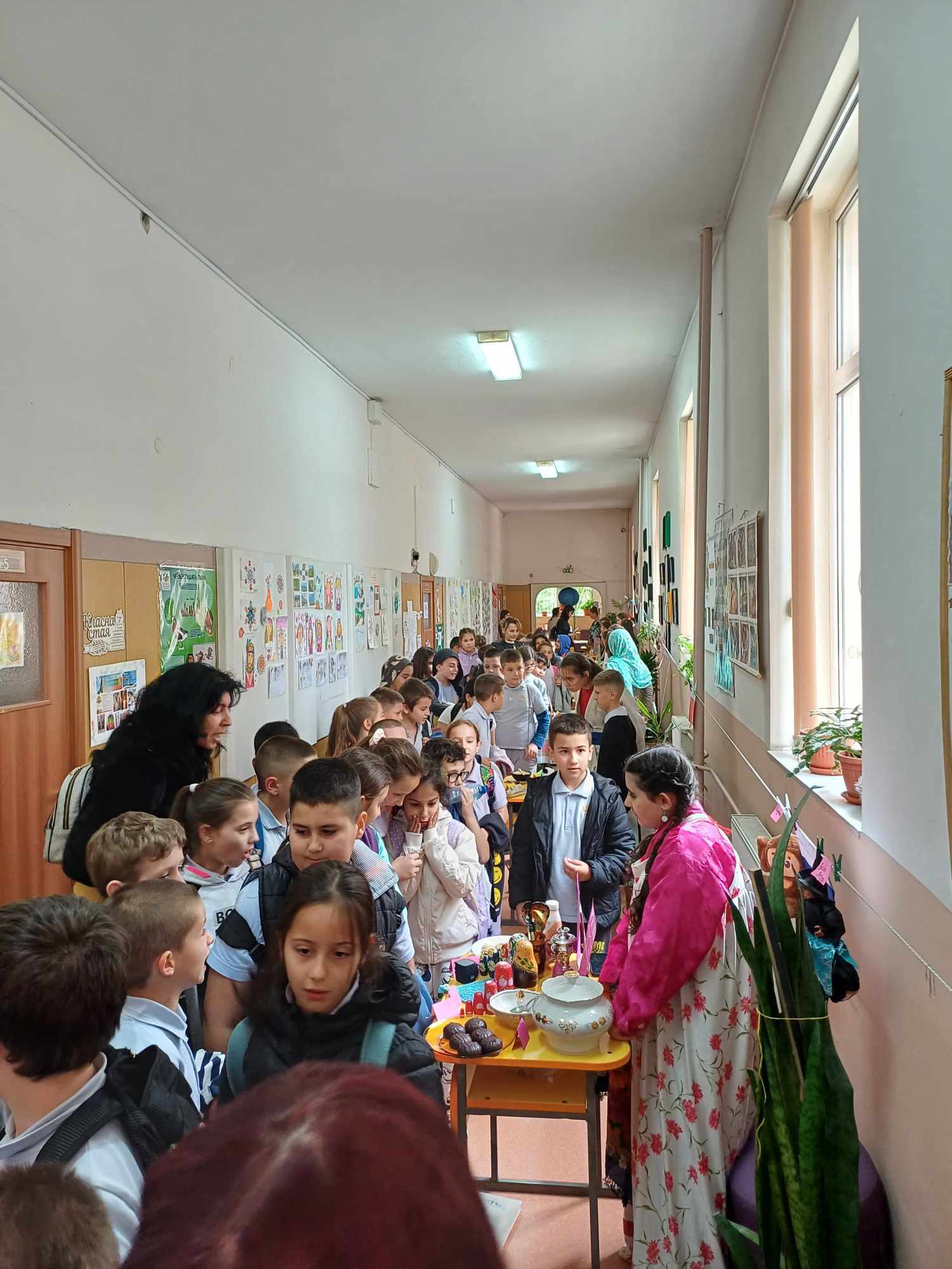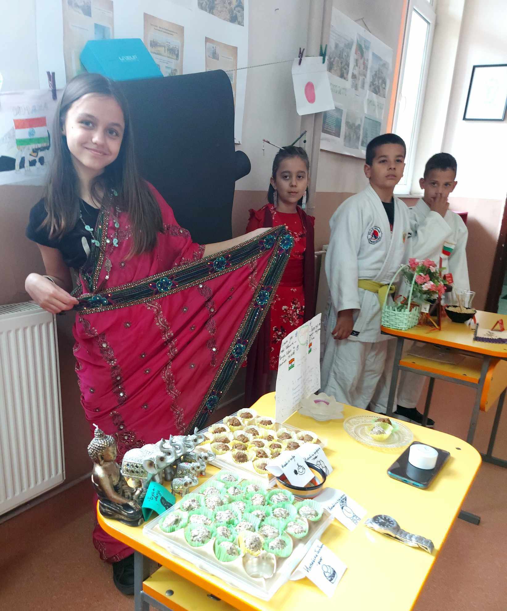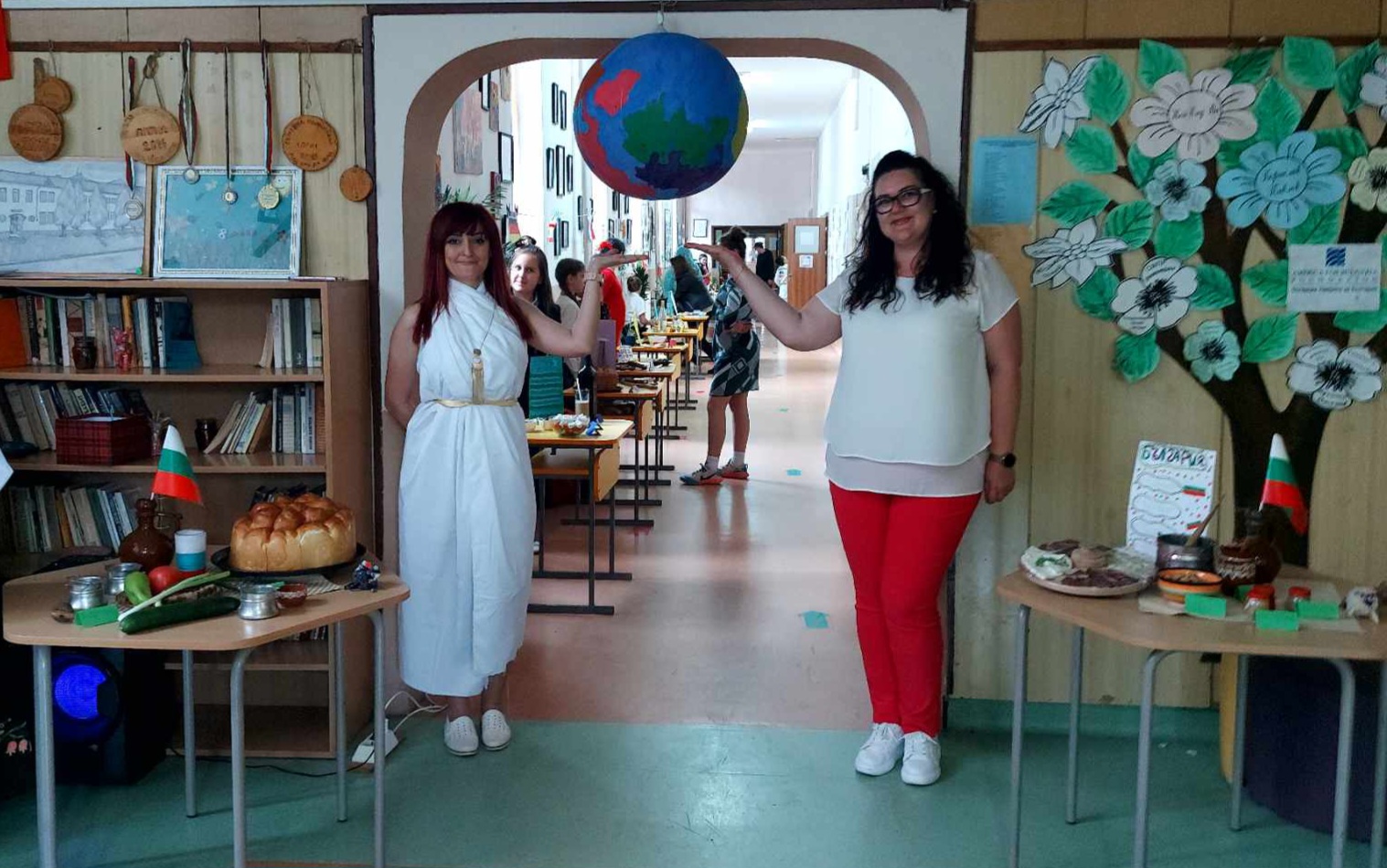 Учениците се подготвиха с интересна информация, традиционни ястия, облекло, музика и изложба от предмети за 13 държави – България, Гърция, Румъния, Германия, Италия, Испания Франция, Турция, Китай, Русия, Египет, Индия и Япония.