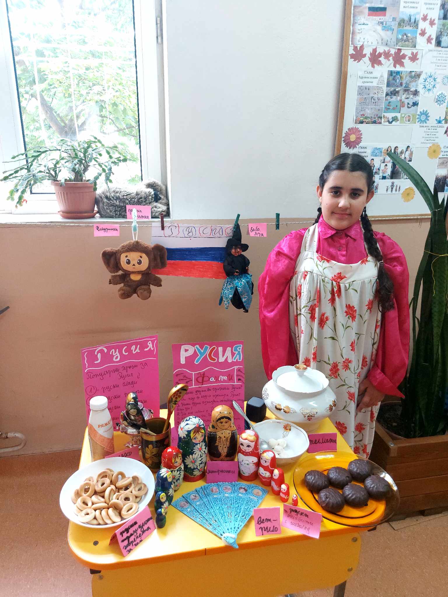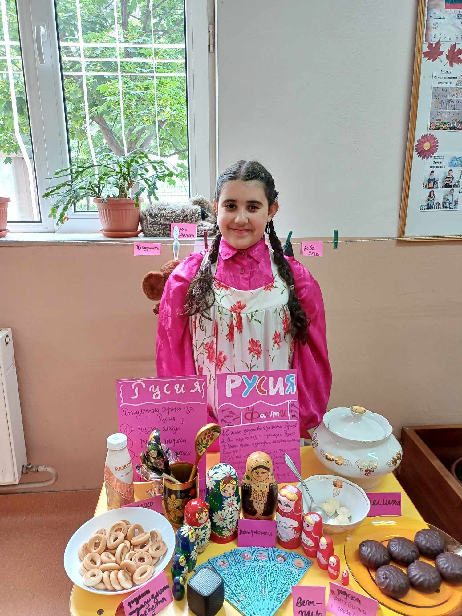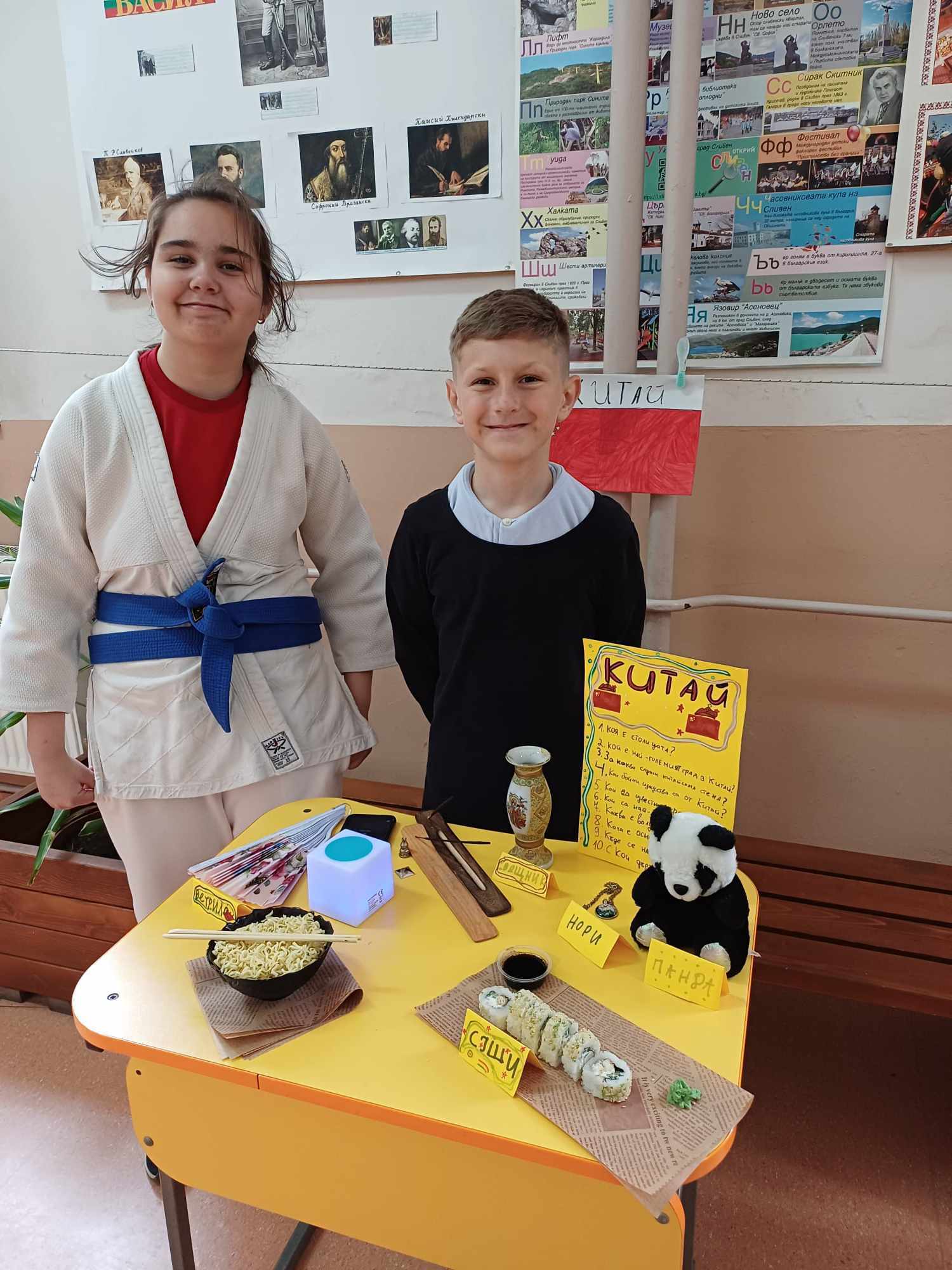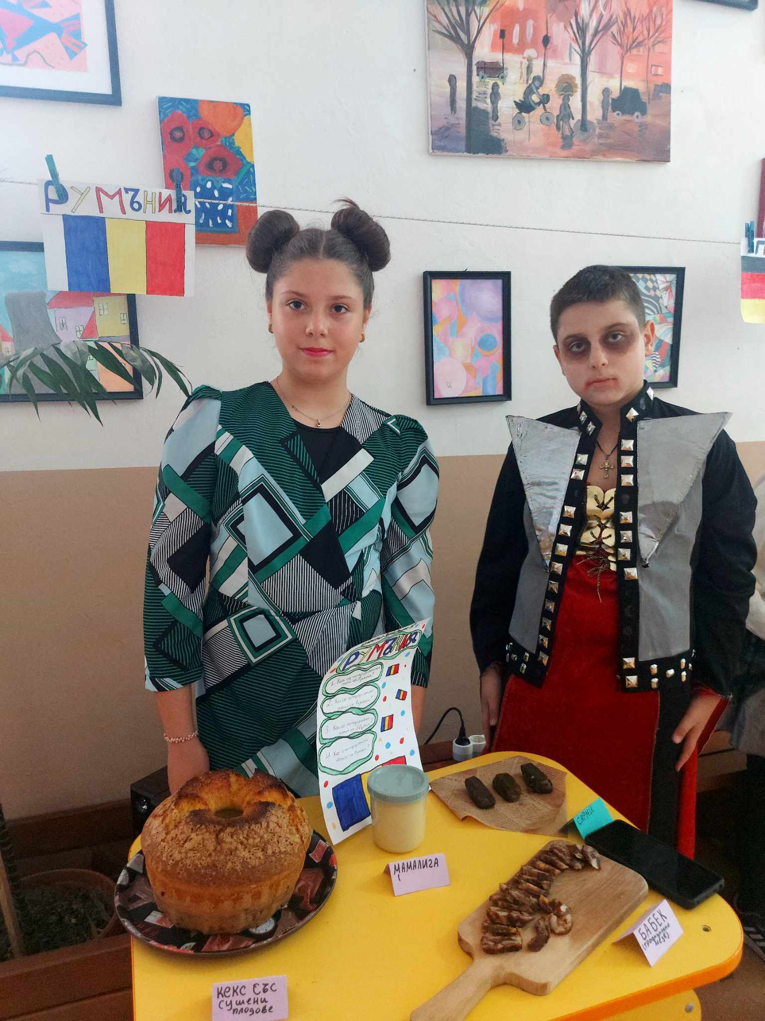 Учениците се подготвиха с интересна информация, традиционни ястия, облекло, музика и изложба от предмети за 13 държави – България, Гърция, Румъния, Германия, Италия, Испания Франция, Турция, Китай, Русия, Египет, Индия и Япония.