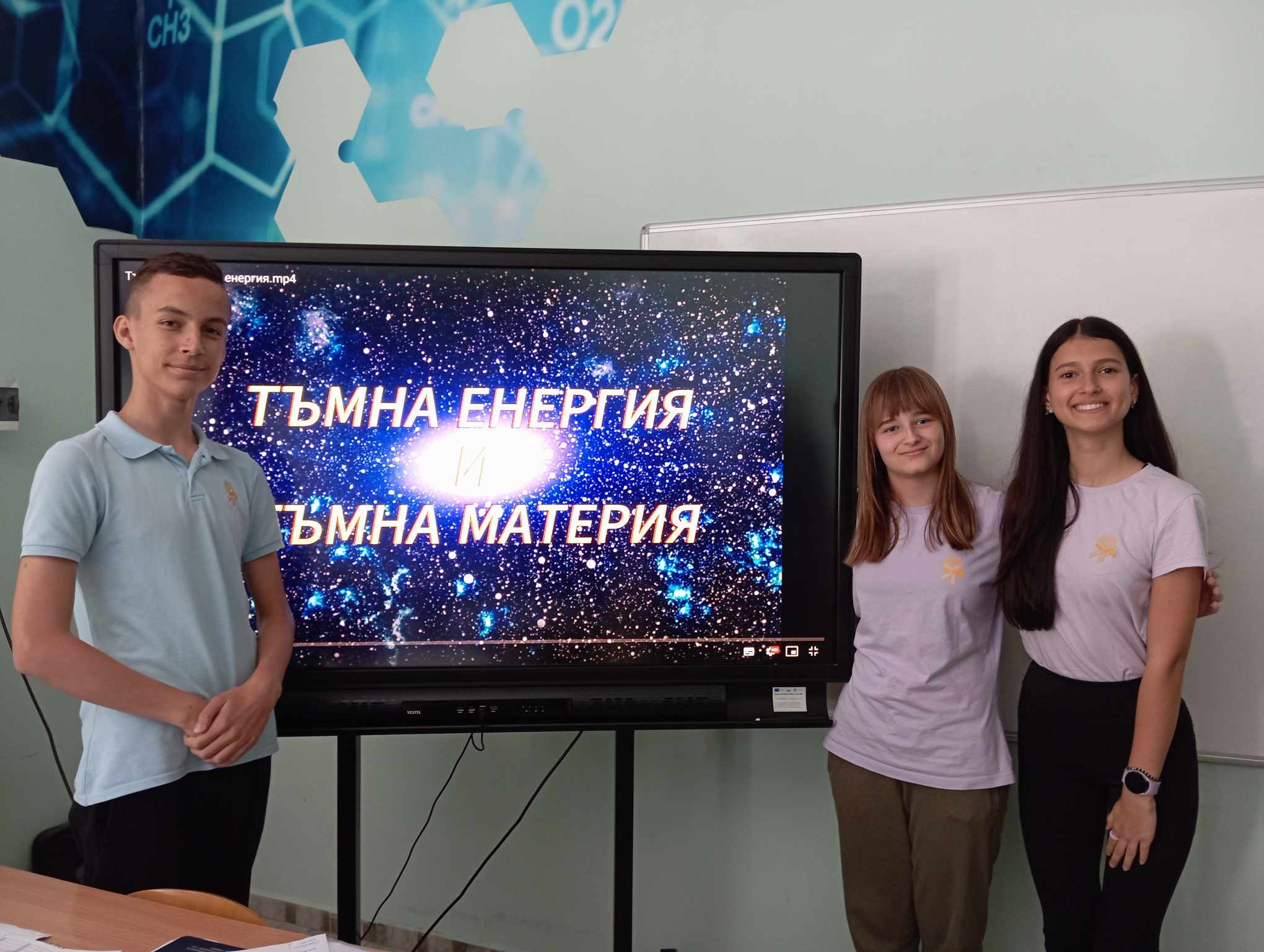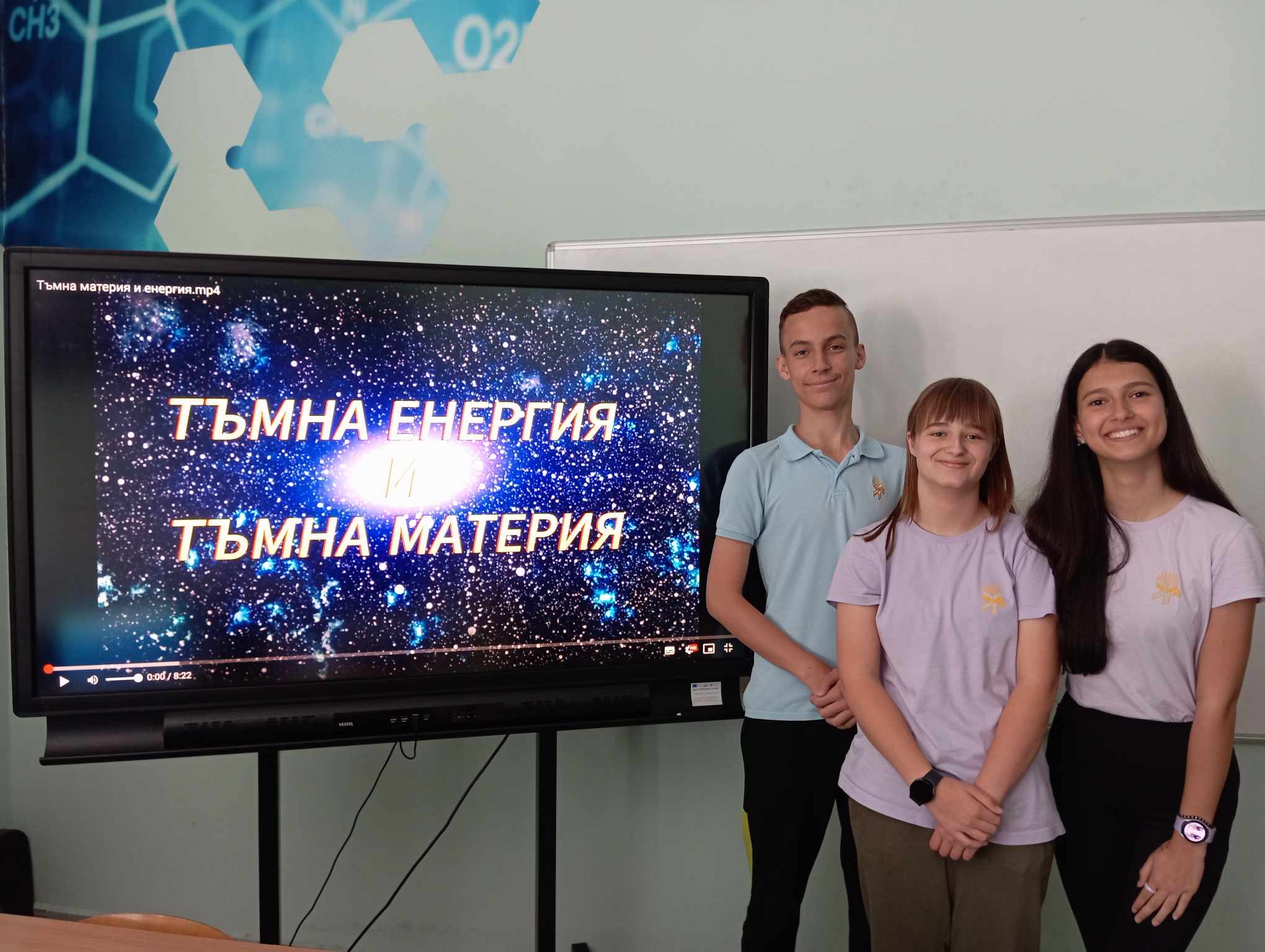 Учениците от 7а клас Дария Балджиева, Жаклин Димитрова и Даниел Константинов, с ръководител инж. Ваня Иванова участваха в национален конкурс „70 години Европейски център за ядрени изследвания – ЦЕРН“, „25 години България в ЦЕРН“. Условията на конкурса бяха да участват най-много трима съавтори в различни направления по предварително посочени теми и технически изисквания. Нашите ученици изготвиха видеоклип на тема: „Тъмна материя и тъмна енергия”. В него те включиха последните научни заключения на учените и любопитния факт, че черната материя е открита от българин, роден във Варна. Заслужено спечелиха трето място. В категорията не са присъдени първо и второ място.