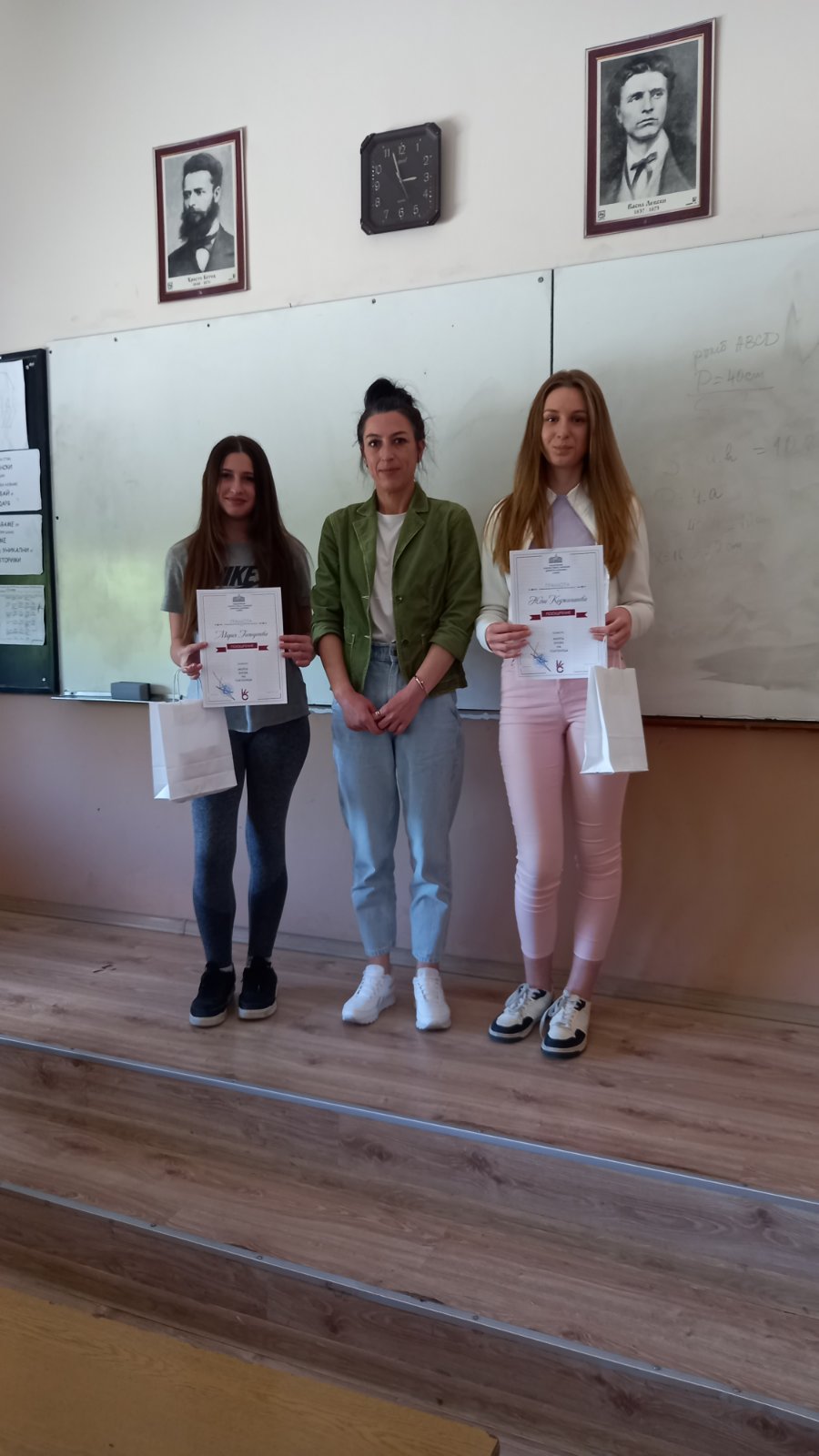 Обявени бяха резултатите от проведеното в края на месец март изнесено ателие – конкурс на тема „Моята буква на глаголица!“, организирано от Национална художествена гимназия „Димитър Добрович“. Госпожа Ирина Василева, учител по художествена тъкан, лично награди седмокласниците Невена Стоянова, Николета Златева, Мария Господинова и Жени Коджаманова.