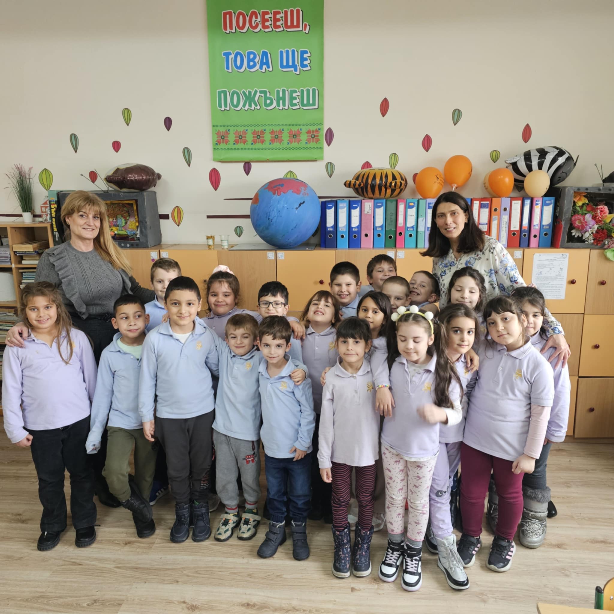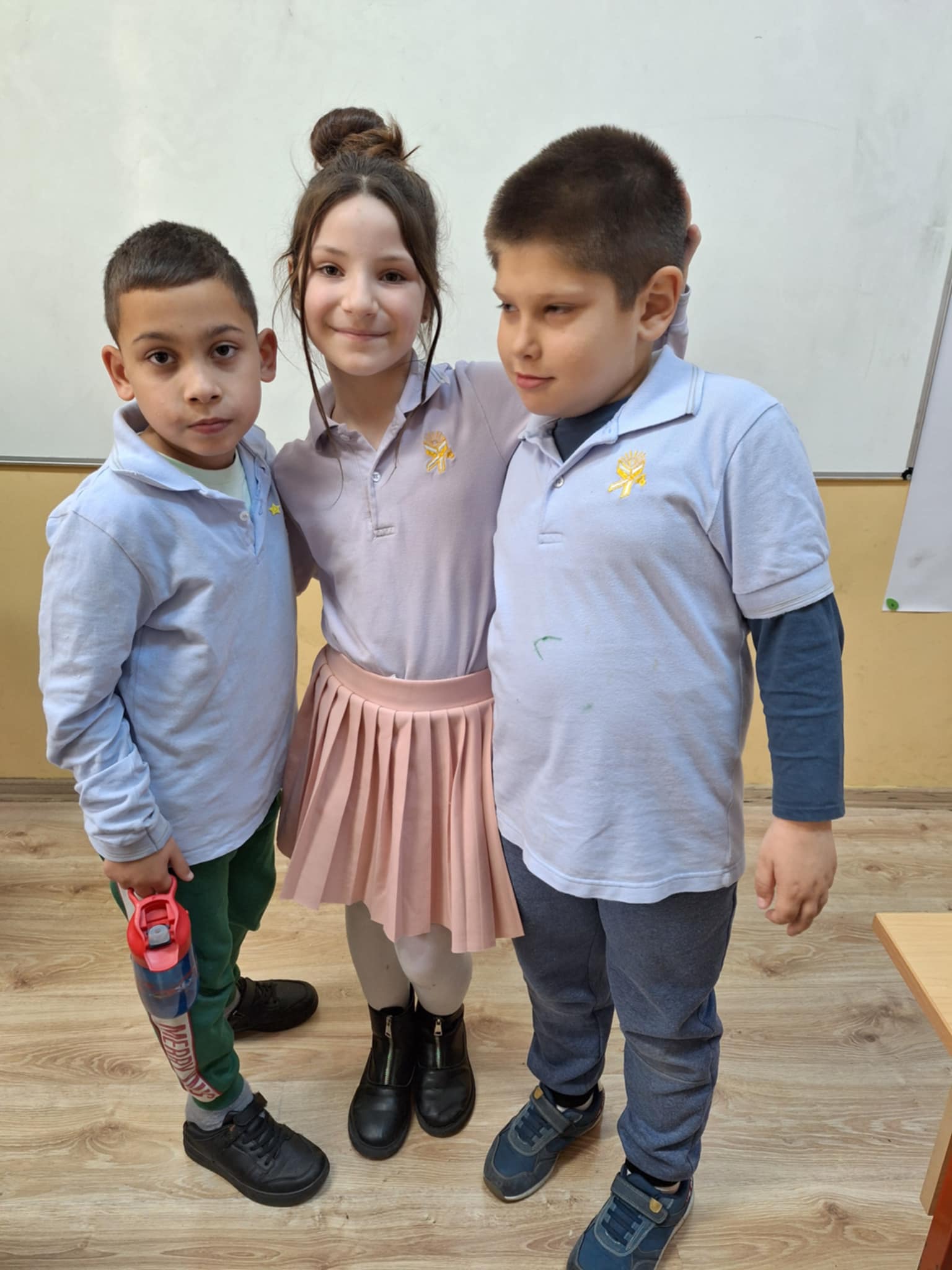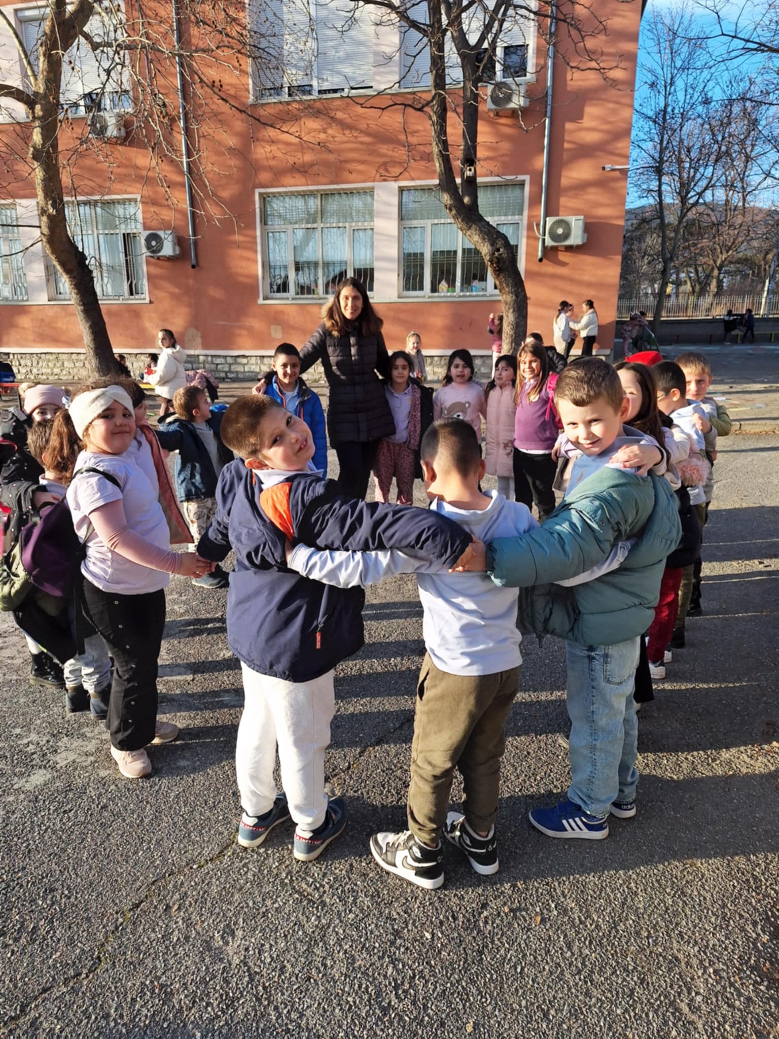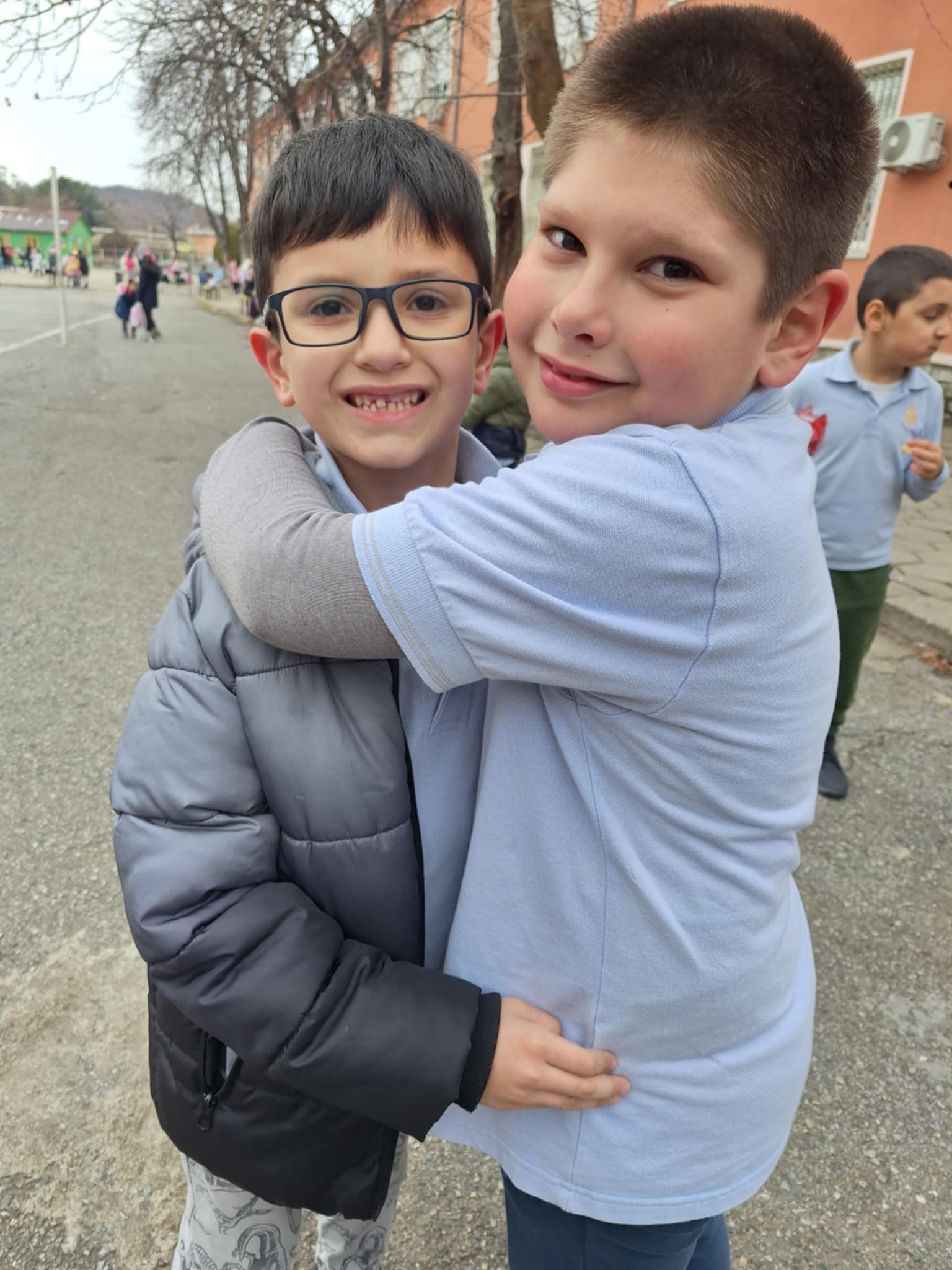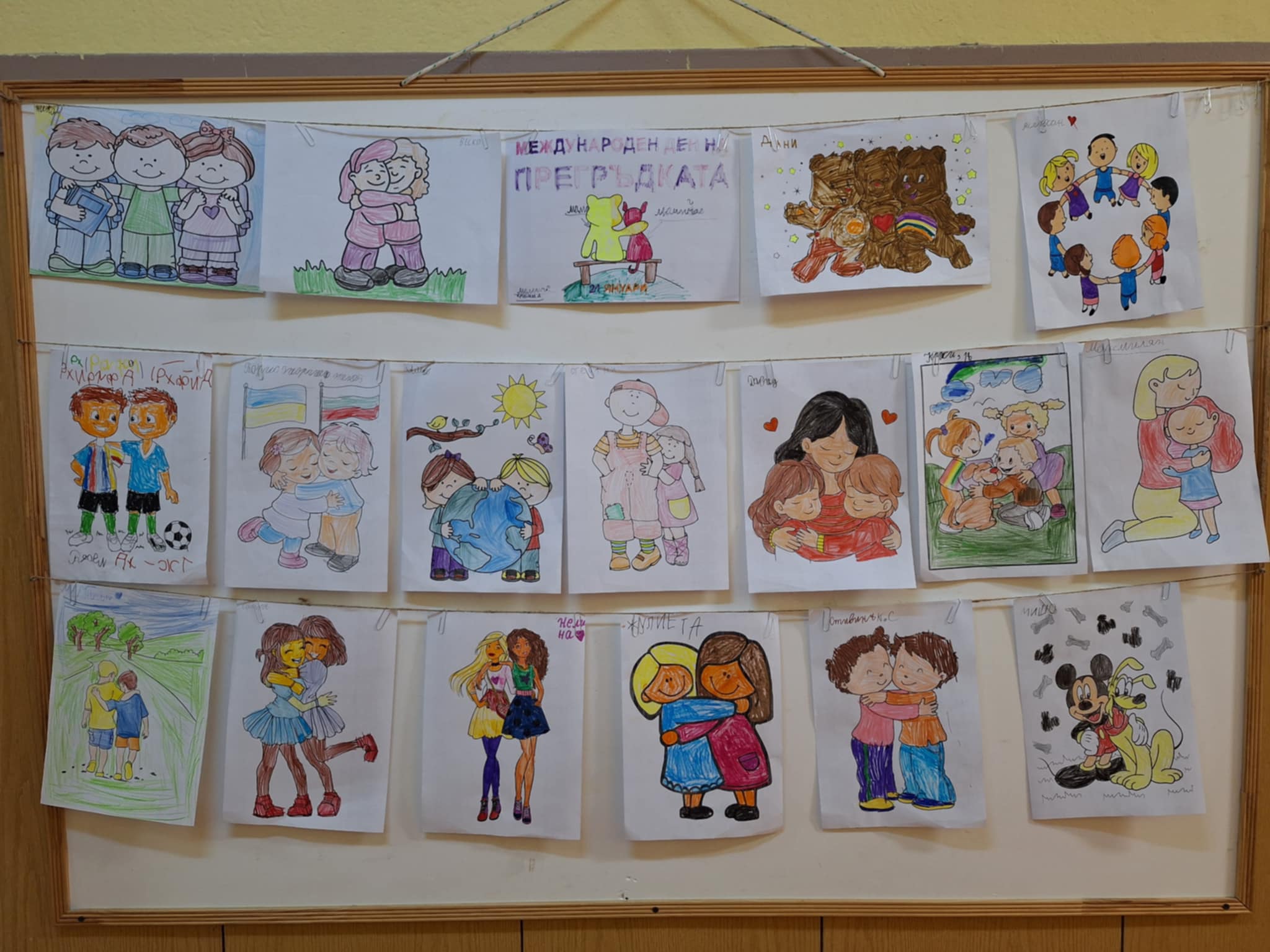 Учениците от 1 „в“ клас също отбелязаха деня, като се включиха с различни дейности. Бяха запознати с презентация, от която научиха, колко е важно да си съпричастен и добър към другите, да помагаш, подкрепяш, да прегърнеш някого, който има нужда от прегръдка в труден за него момент или да го поздравиш с нея. Те оцветиха рисунки, танцуваха, пяха и си подариха прегръдки.