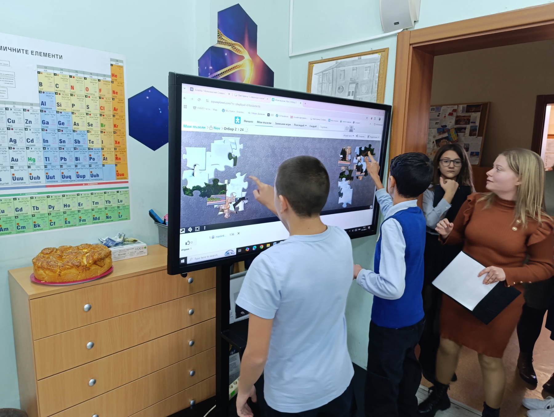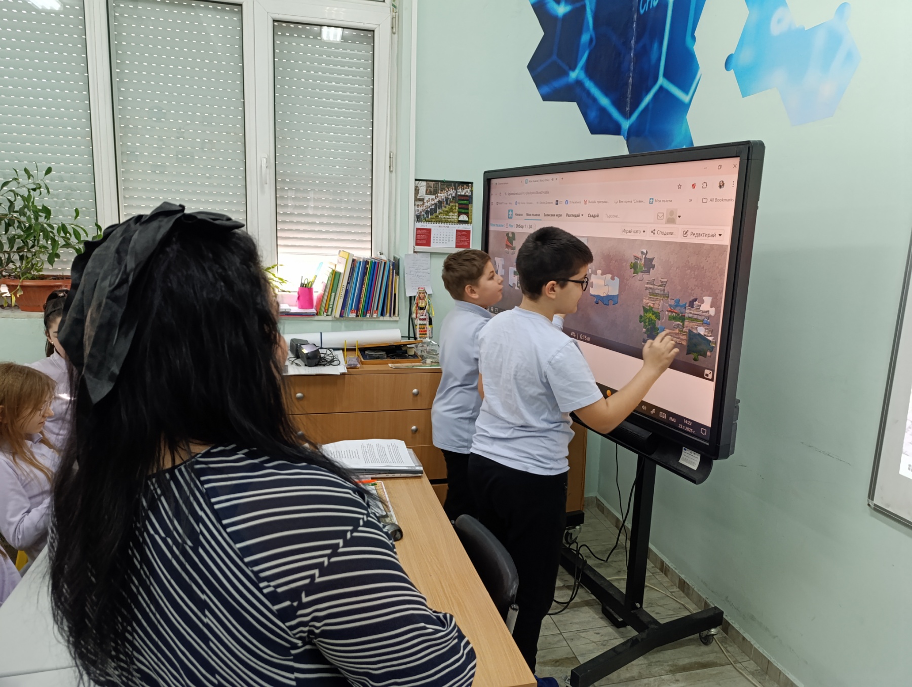 Урокът продължи със състезателна част. Учениците бяха разпределени в два отбора – отборът на 5 „а“ и отборът на 6 „а“ клас. Първата игра се състоеше под формата на викторина. При нея децата успяха да отговорят безгрешно на всички въпроси и получиха награди за това. Във втората игра се включиха по двама ученици от отбор. Те трябваше да подредят пъзел на забележителност. Тази игра спечелиха децата от пети клас, те по-бързо наредиха своя пъзел. В последната игра от състезателната част се включиха целите отбори. Всеки от тях притежаваше картонче с дума. Отборът на шестокласниците  пръв получи своето изречение и спечели наградата.