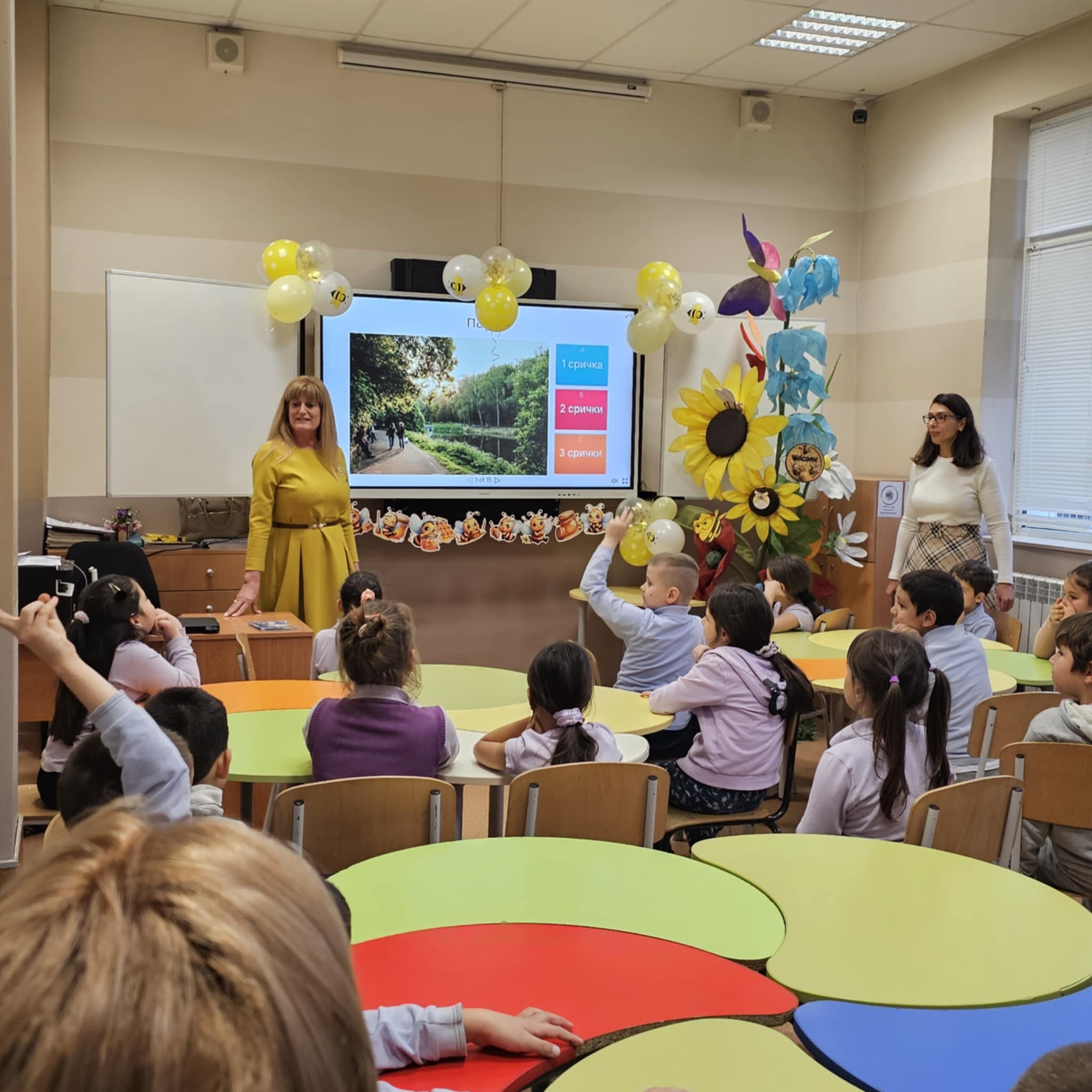 На 13.02.2025 г. с учениците от 1.в клас бе проведен открит урок на тема: “Какво научих”. Децата, с настроение и радост, посрещнаха своите родители, за да им покажат какво са научили.