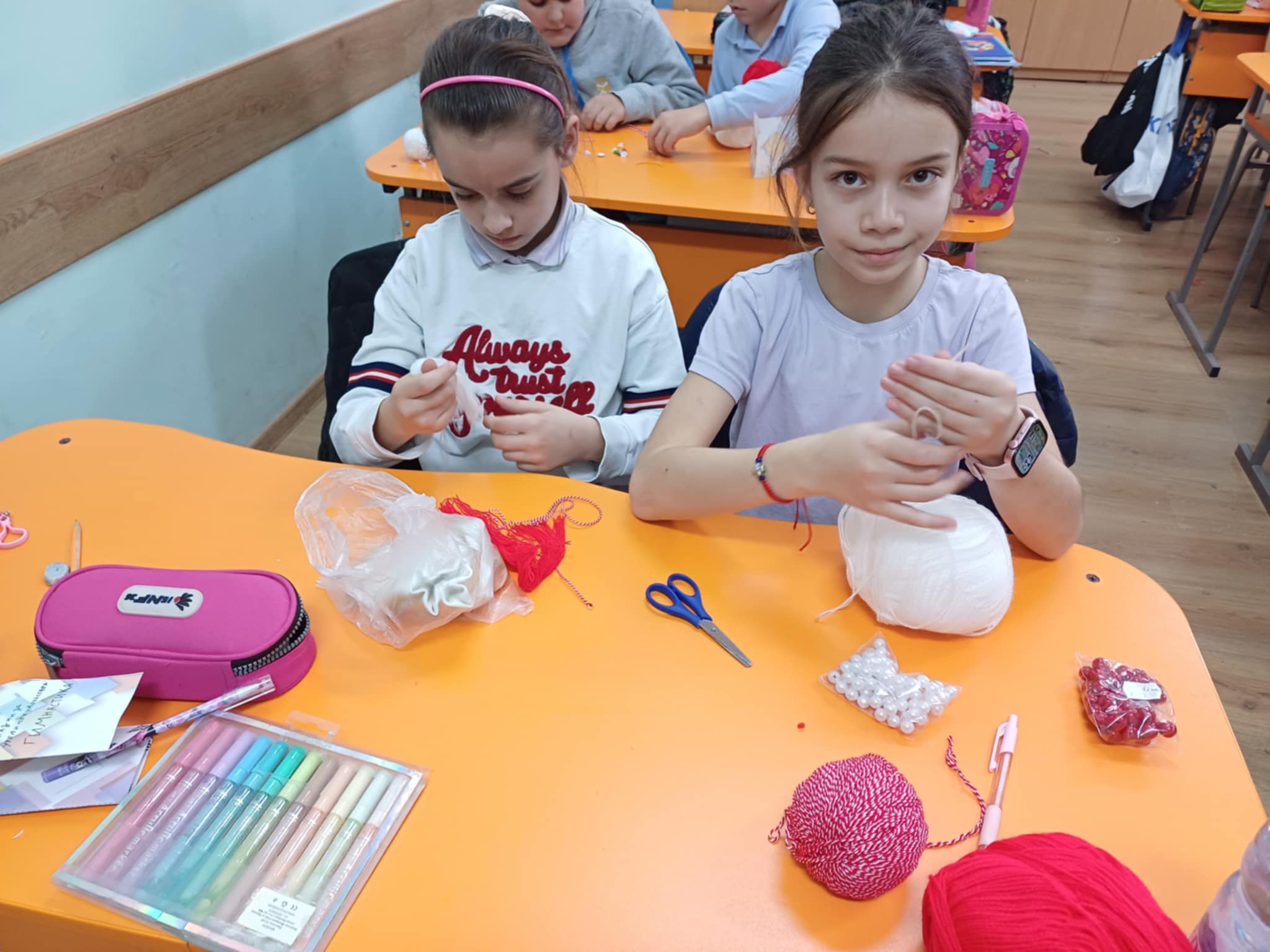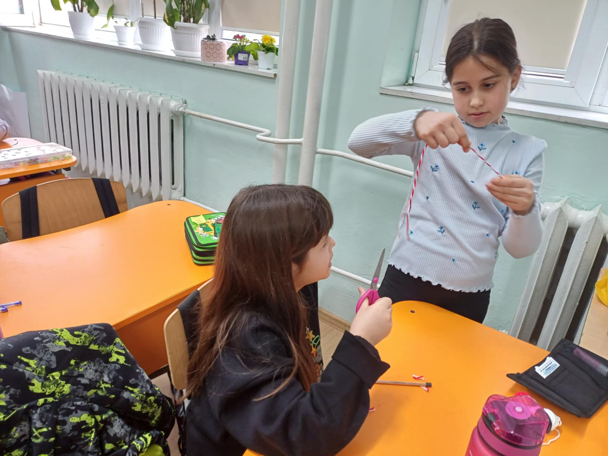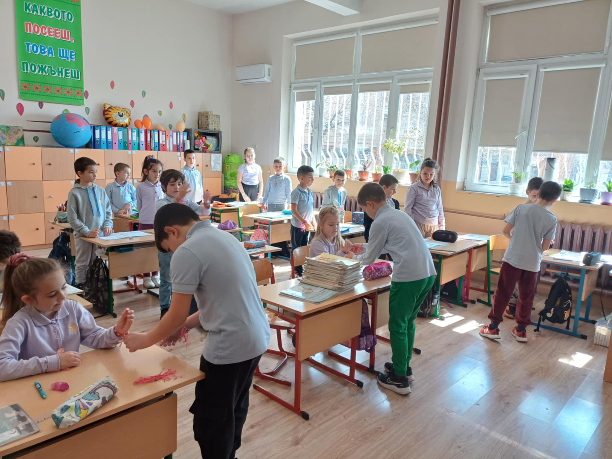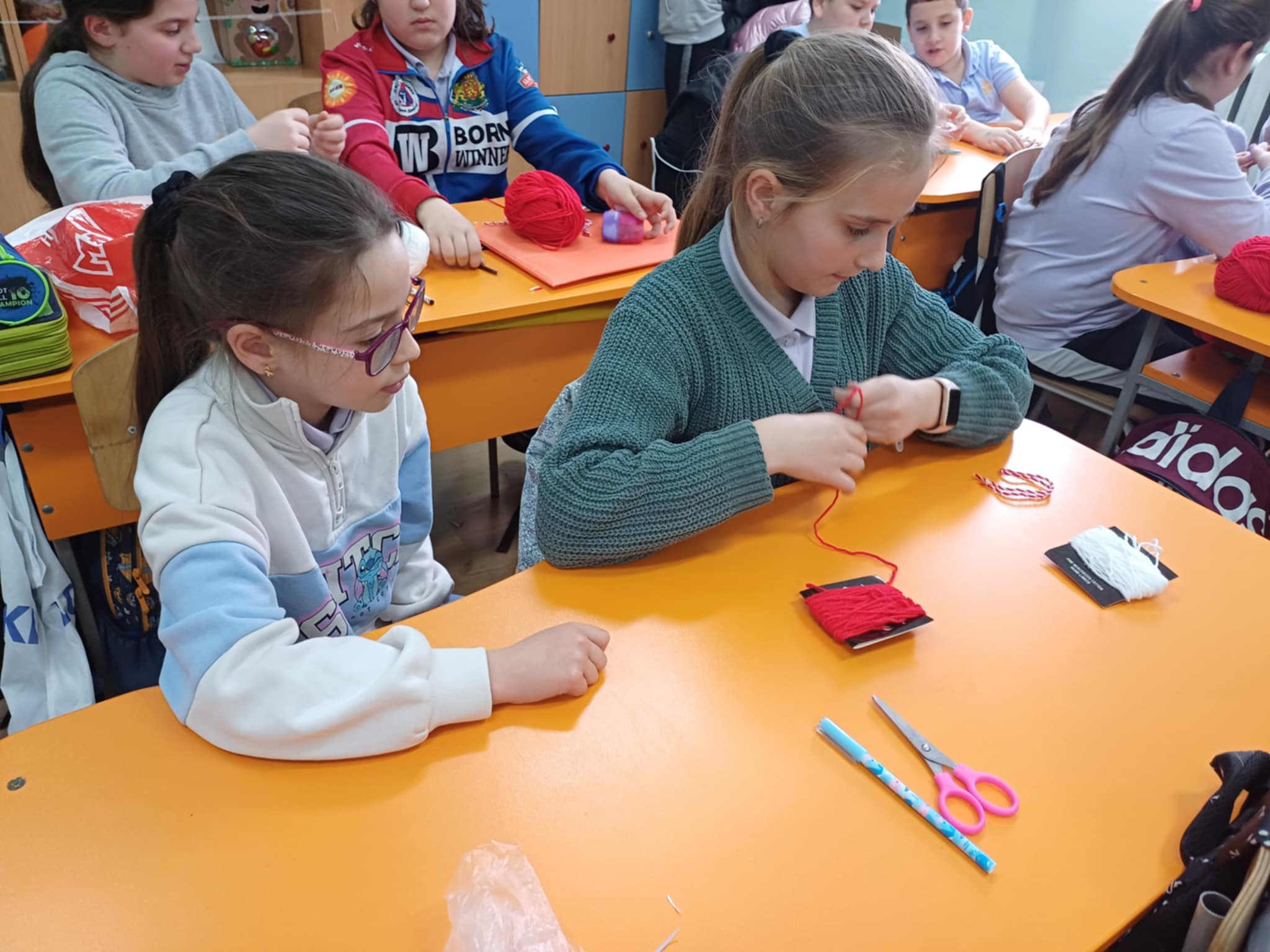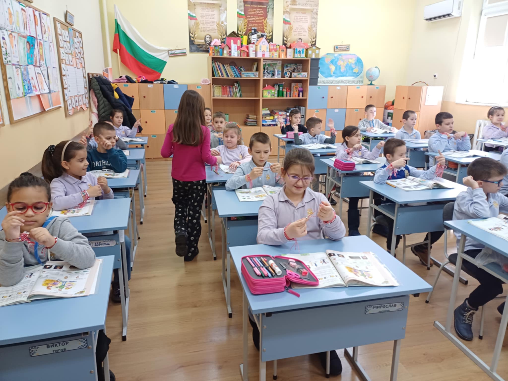 Учениците от клуб ,,МЕГО” изработиха мартеници и закичиха децата от първи до четвърти клас, както и малчуганите от ДГ ,,Детство”.