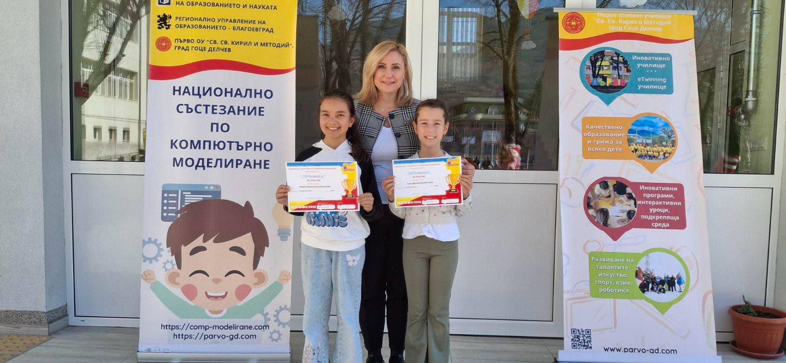 На 22 март 2025 г. в гр. Гоце Делчев се проведе Националното състезание по компютърно моделиране, в което взеха участие ученичките Мария Василева от 3 “б” клас и Саня Вълчева от 3 “а” клас. Под ръководството на своя учител – г-жа Иванка Парушева, двете момичета показаха отлични знания в областта на блоковото програмиране, състезавайки се с най-добрите ученици от страната.