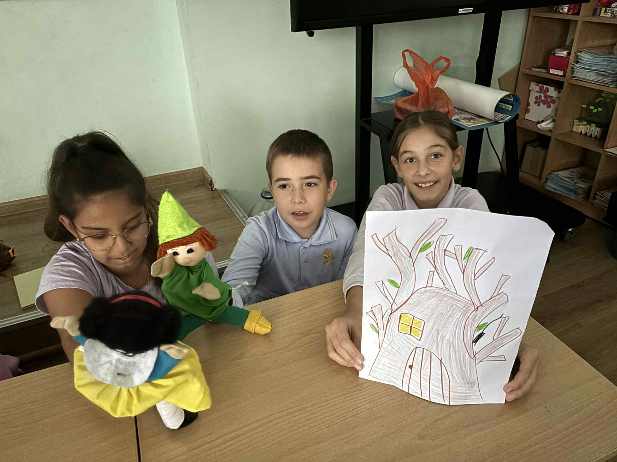 Сцената оживя с пъстри герои и забавни гласове, когато четвъртокласниците представиха подготвения от тях куклен спектакъл. Децата в публиката се смееха, участваха активно и с интерес следяха всяко действие на героите.