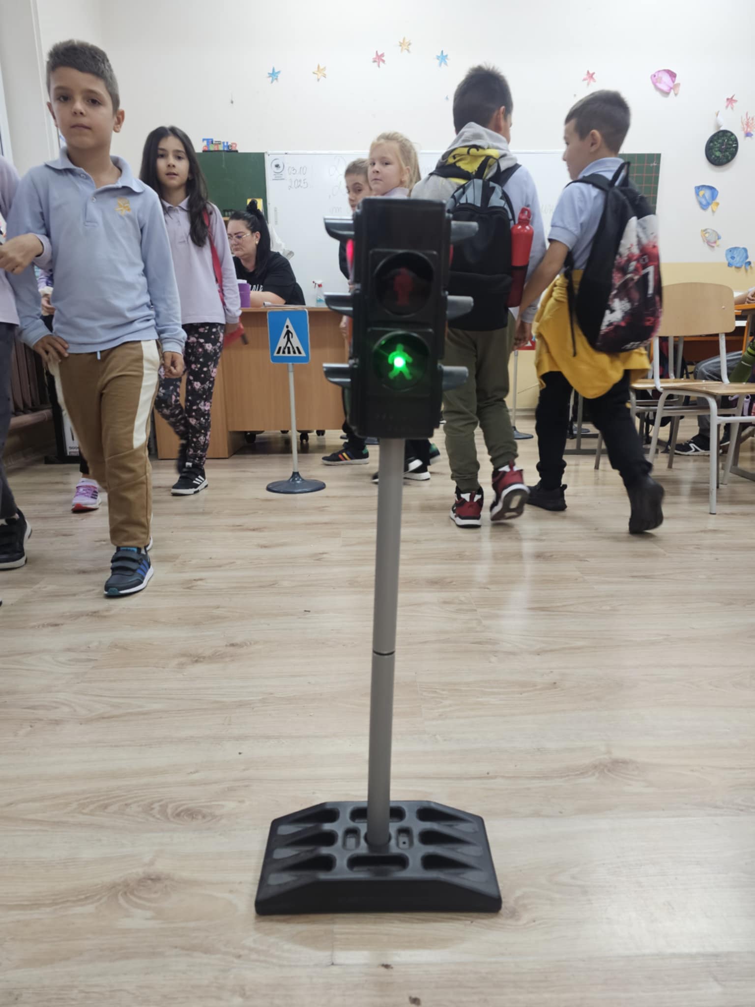 Организирана беше и ролева игра, в която учениците влязоха в ролята на пешеходци и шофьори за да усетят отговорността на всяка страна в движението.