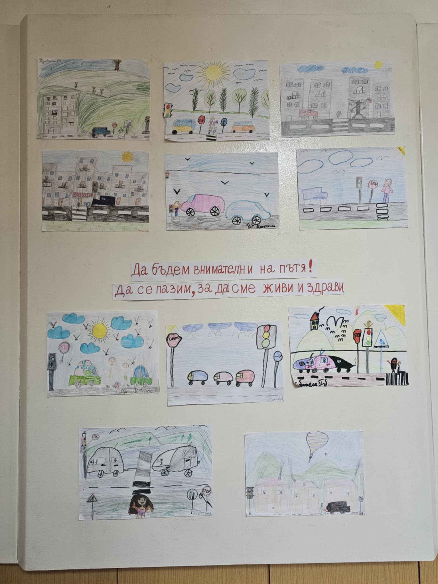 Учениците от начален етап изработиха плакати и рисунки, посветени на правилата за движение и пътните знаци.