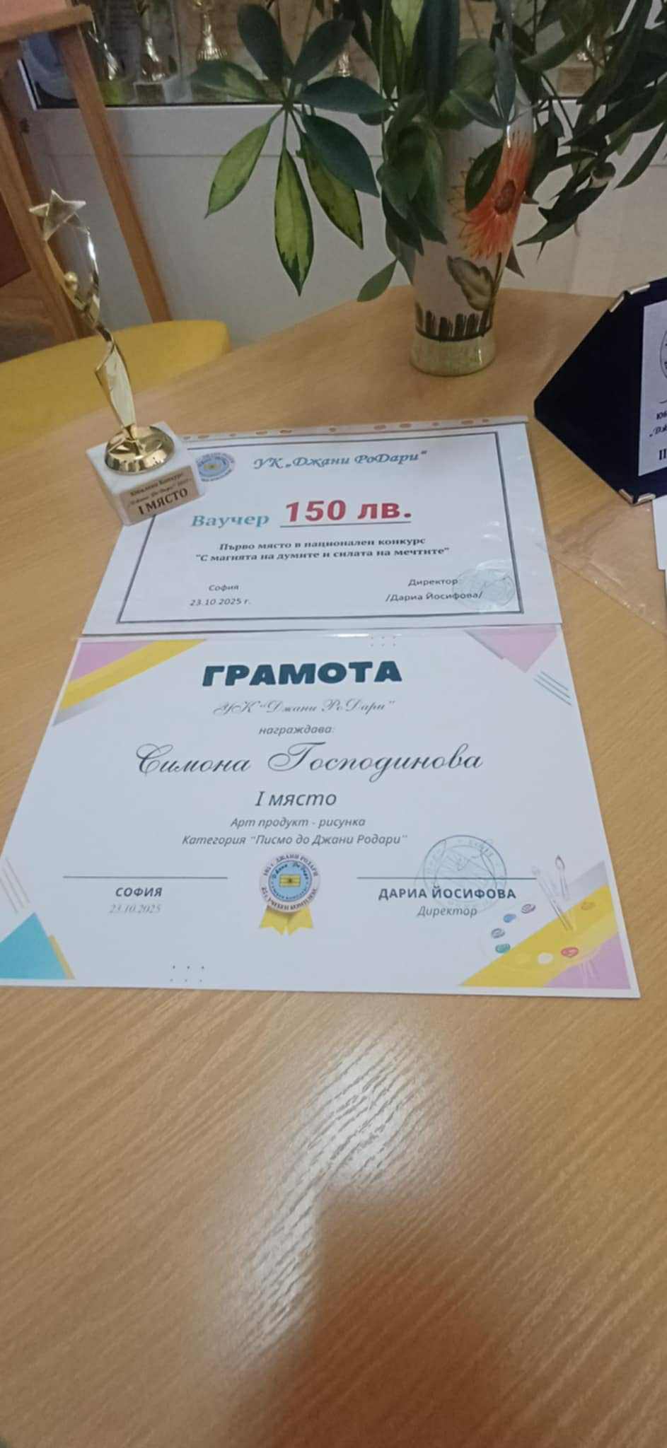 Симона Иванова Господинова – I-во място и парична награда